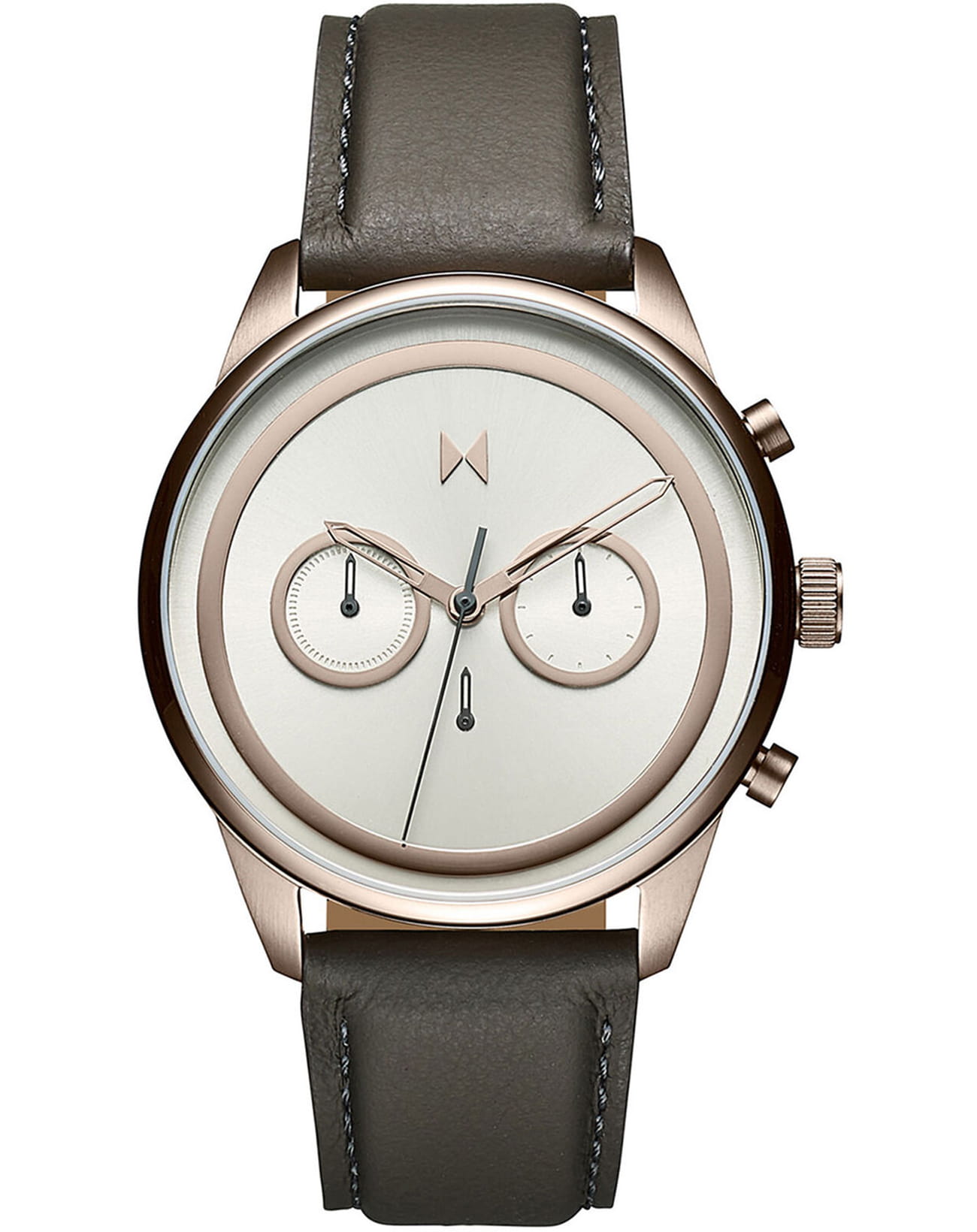 Мужские кварцевые часы-хронографХронографФункция позволяет измерять отрезки времени с особой точностью: часы, минуты, секунды. Верным признаком хронографа является наличие на циферблате 3 дополнительных окошек-счётчиков. с секундомеромСекундомерСекундоме́р — прибор, способный измерять интервалы времени с точностью до долей секунды. MVMT 28000126-D – лаконичная красота и изысканная элегантность. Оригинальная модель с классическим оформлением станет превосходным завершением образа, наделив его индивидуальным характером. Корпус выполнен из нержавеющей стали с IP-покрытиемIP-покрытиеМетод ионного напыления. Демонстрирует повышенную устойчивость к истиранию, окислению и химическим веществам. Под воздействием высокого давления и температуры около 1500°C молекулы металла надёжно соединяются с частицами корпуса часов., диаметром 43 мм и толщиной 10,1 мм, что обеспечивает долговечность и надежность. Закаленное минеральное стеклоМинеральное стеклоМинеральное стекло представляет собой искусственно выращенный минерал кварца. Такое стекло отличается особой устойчивостью к повреждениям и царапинам. Уступает по некоторым качествам сапфировому стеклу. защищает циферблат от царапин. Кожаный ремешок на стандартной застёжке обеспечивает комфортное ношение. 12-ти и 24-х часовой формат времени. Водозащита 50 метров позволит защитить корпус от случайных брызг или капель дождя. Рифленая заводная головка с защитой. Это аксессуар для мужчины, который ценит классический стиль и функциональность.