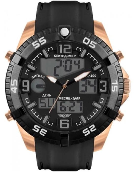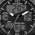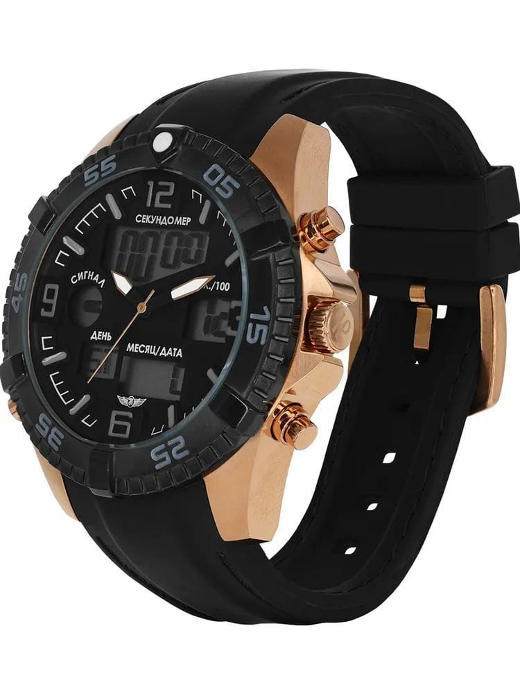 Часы оснащены японским кварцевым механизмом с аналогово-цифровой индикацией, обеспечивая точный ход и дополнительные возможности измерения времени. Циферблат защищён минеральным стекломМинеральное стеклоМинеральное стекло представляет собой искусственно выращенный минерал кварца. Такое стекло отличается особой устойчивостью к повреждениям и царапинам. Уступает по некоторым качествам сапфировому стеклу., устойчивым к царапинам. Установлена классическая застёжка-пряжка, обеспечивая надёжную фиксацию на запястье. Модель обладает водонепроницаемостью до 100 метров, что делает её подходящей для плавания и сноркелинга.