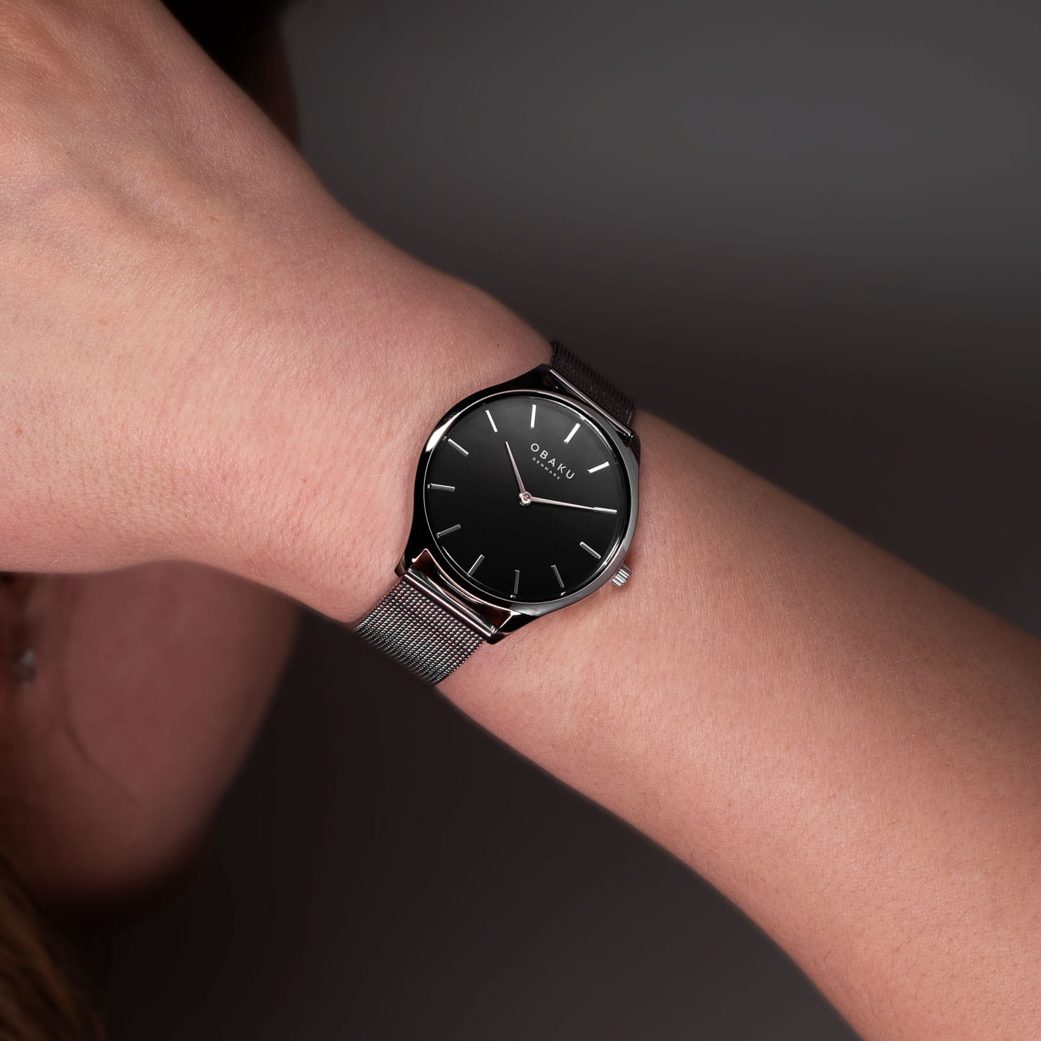 Датские женские часы Obaku Tang Lille Onyx V260LXCBMC