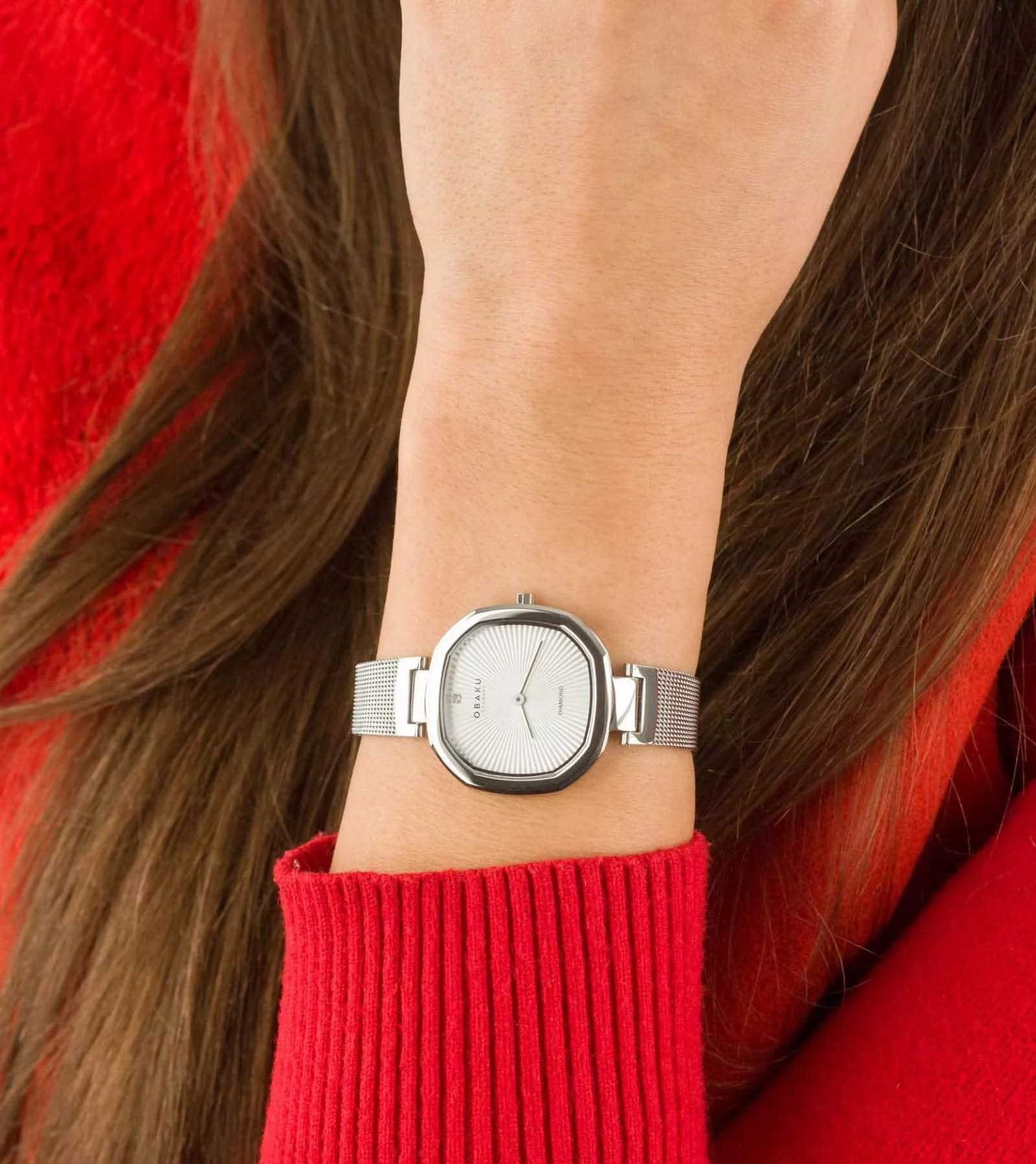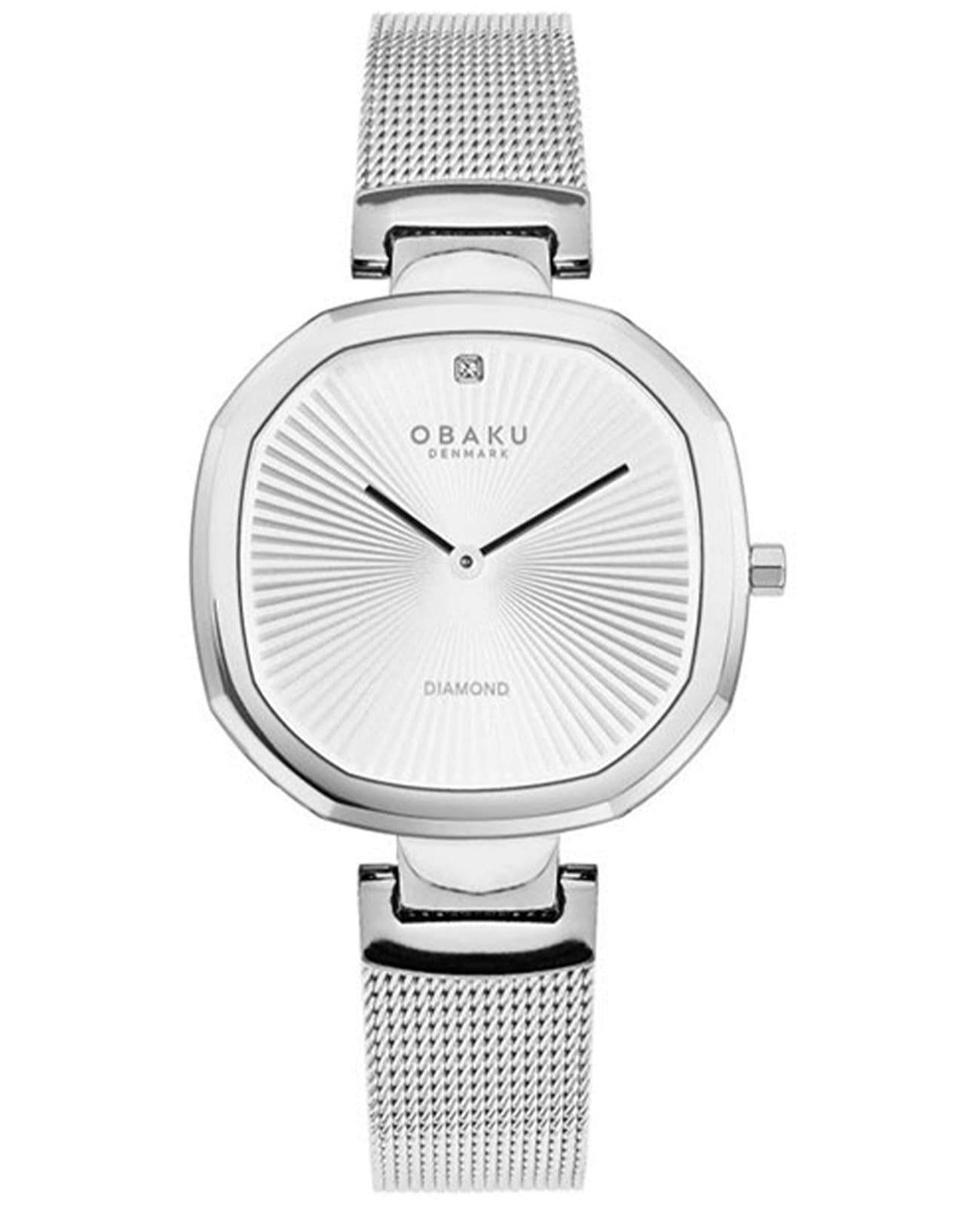 Женские наручные кварцевые часы с минеральным стекломМинеральное стеклоМинеральное стекло представляет собой искусственно выращенный минерал кварца. Такое стекло отличается особой устойчивостью к повреждениям и царапинам. Уступает по некоторым качествам сапфировому стеклу. Obaku Diamond V277LXCIMC, кварцевый механизм с высокой точностью. Класс водозащиты: 30 метров, позволит защитить корпус от случайных брызг или капель дождя. Корпус часов изготовлен из стали. Стальной браслет выполнен в технике миланского плетения на раскладной застёжкеРаскладная застёжкаТакой тип застёжки используется только на браслетах из металла. Она никогда не раскрывается полностью, происходит разделение на 2 и более частей. Раскладывающая застёжка снизит вероятность потери часов к минимуму.. Серебристый циферблат декорирован бриллиантом.
