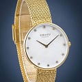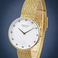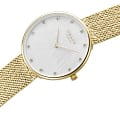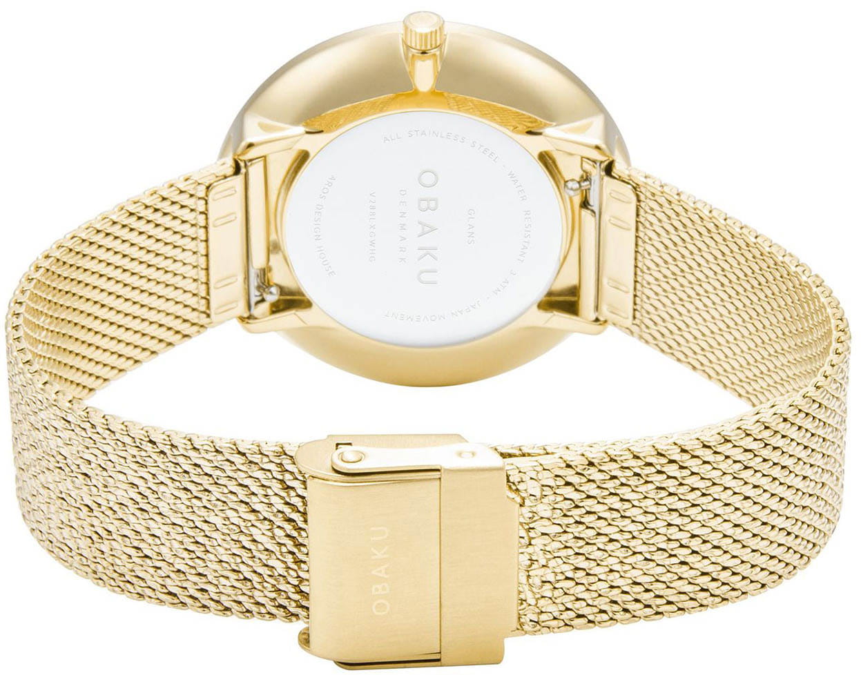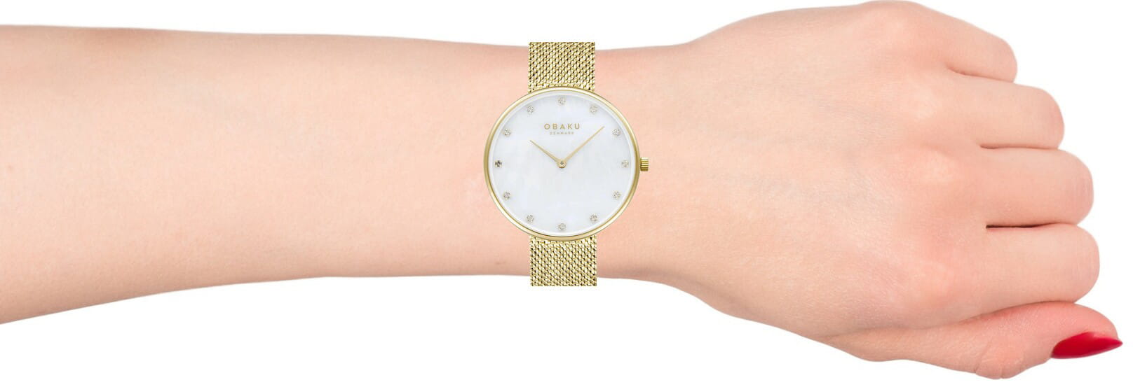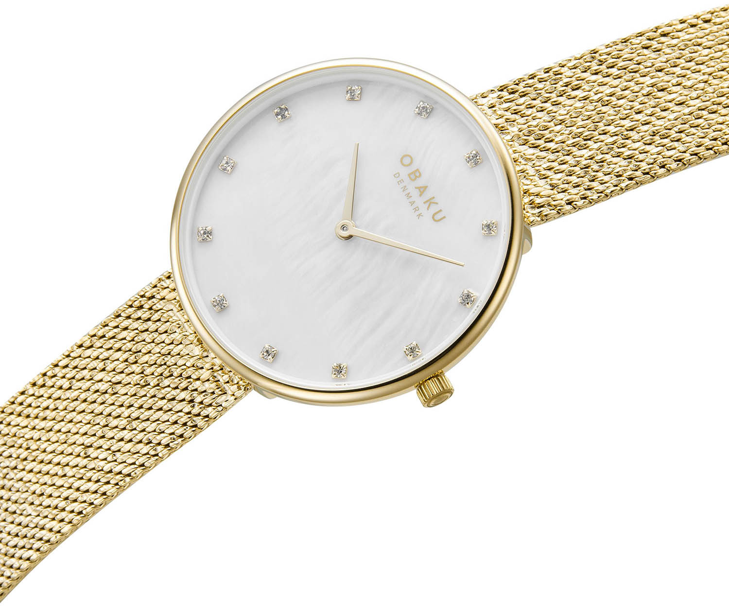 Женские наручные кварцевые часы с минеральным стекломМинеральное стеклоМинеральное стекло представляет собой искусственно выращенный минерал кварца. Такое стекло отличается особой устойчивостью к повреждениям и царапинам. Уступает по некоторым качествам сапфировому стеклу. Obaku Mesh V288LXGWHG, кварцевый механизм с высокой точностью. Класс водозащиты: 30 метров, позволит защитить корпус от случайных брызг или капель дождя. Корпус часов изготовлен из стали с IP-покрытиемIP-покрытиеМетод ионного напыления. Демонстрирует повышенную устойчивость к истиранию, окислению и химическим веществам. Под воздействием высокого давления и температуры около 1500°C молекулы металла надёжно соединяются с частицами корпуса часов.. Стальной браслет выполнен в технике миланского плетения на раскладной застёжкеРаскладная застёжкаТакой тип застёжки используется только на браслетах из металла. Она никогда не раскрывается полностью, происходит разделение на 2 и более частей. Раскладывающая застёжка снизит вероятность потери часов к минимуму. с IP-покрытиемIP-покрытиеМетод ионного напыления. Демонстрирует повышенную устойчивость к истиранию, окислению и химическим веществам. Под воздействием высокого давления и температуры около 1500°C молекулы металла надёжно соединяются с частицами корпуса часов.. Циферблат инкрустирован кристаллами.