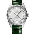 В центре циферблата напечатана крестообразная мушка, отсылающая к давней традиции хронометрическихХронографФункция позволяет измерять отрезки времени с особой точностью: часы, минуты, секунды. Верным признаком хронографа является наличие на циферблате 3 дополнительных окошек-счётчиков. моделей OMEGA. Часы оснащены зеленым кожаным ремешком и приводятся в движение калибром OMEGA Co-Axial Master Chronometer 8923 с революционной антимагнитной технологией.