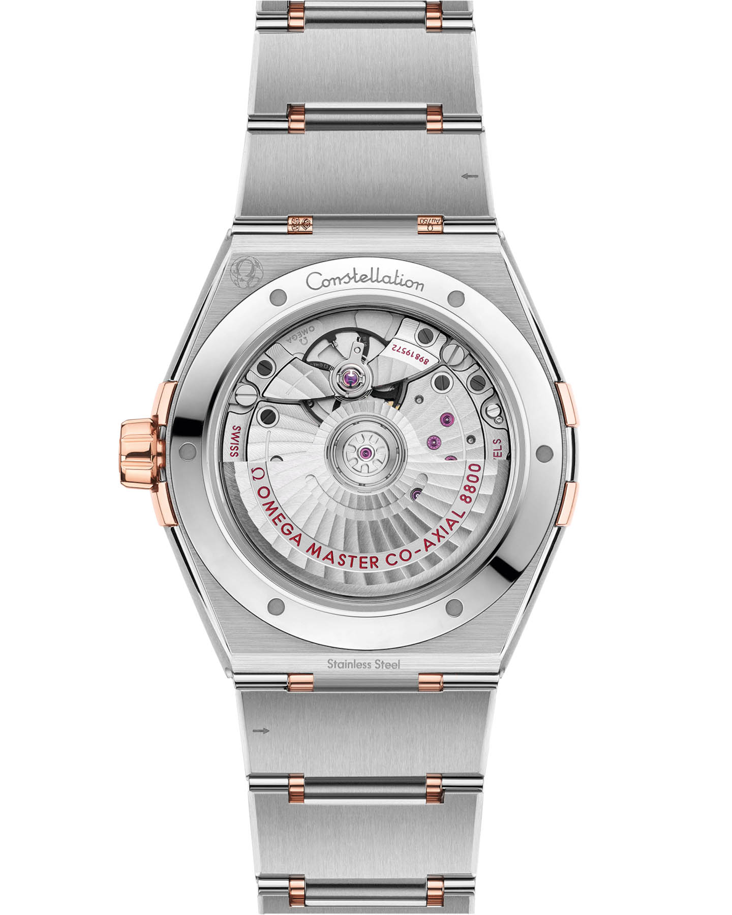 Sedna™. Сердцем этих часов является коаксиальный хронометр OMEGA Master Chronometer Calibre 8800, который виден через куполообразное сапфировое стеклоСапфировое стеклоПрочный и надёжный материал из кристалла сапфира синтетического происхождения, характеризующийся особой твёрдостью и устойчивостью к царапинам и повреждениям., устойчивое к царапинам.