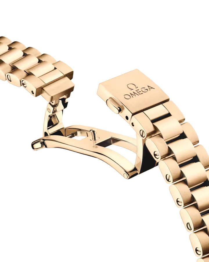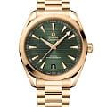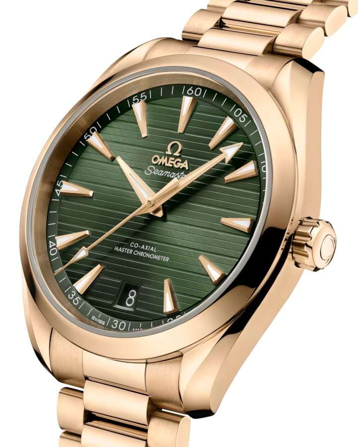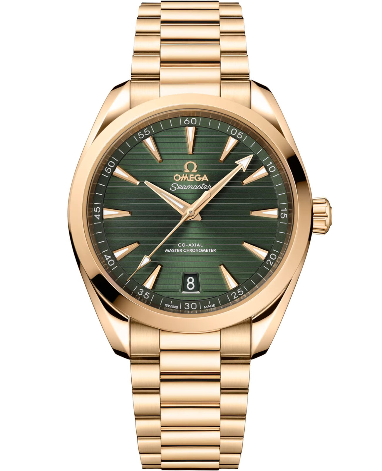 Omega Seamaster Aqua Terra выполнены в симметричном корпусе из 18-каратного золота Sedna™ с завинчивающейся задней крышкой, украшенным волнистым узором. Циферблат дополнен окошком даты на 6 часов, вдохновлён текстурой тикового дерева на палубе яхты. Стрелки и метки оснащены Super-LumiNova для лучшей читаемости в темноте. Механизм Калибр Omega 8901 сертифицирован как Master Chronometer — гарантия высочайшей точности и устойчивости к магнитным полям. Запас хода составляет 60 часов. Защита циферблата обеспечивается сапфировое стеклоСапфировое стеклоПрочный и надёжный материал из кристалла сапфира синтетического происхождения, характеризующийся особой твёрдостью и устойчивостью к царапинам и повреждениям. с антибликовым покрытиемАнтибликовое покрытиеСлой оксида металла в 0,13-0,3 микрон, благодаря которому стекло часов не бликует и не отражает свет. Антибликовое покрытие уменьшает отражение света в 10 раз, обеспечивая отличную читаемость показателей циферблата.. Водозащита Позволяет использовать водные часы без повреждений. Часы установлены на браслете из 18-каратного золота с . Это сочетание премиального качества, технологичности и классического дизайна.