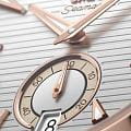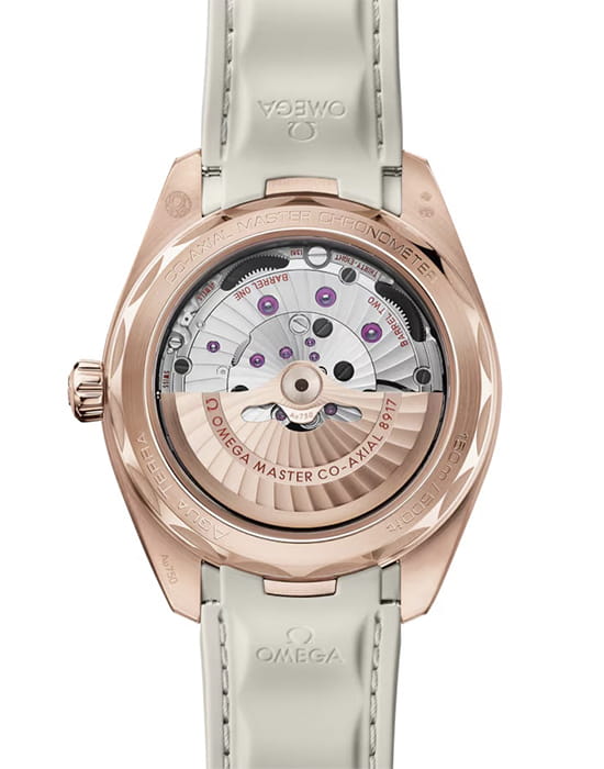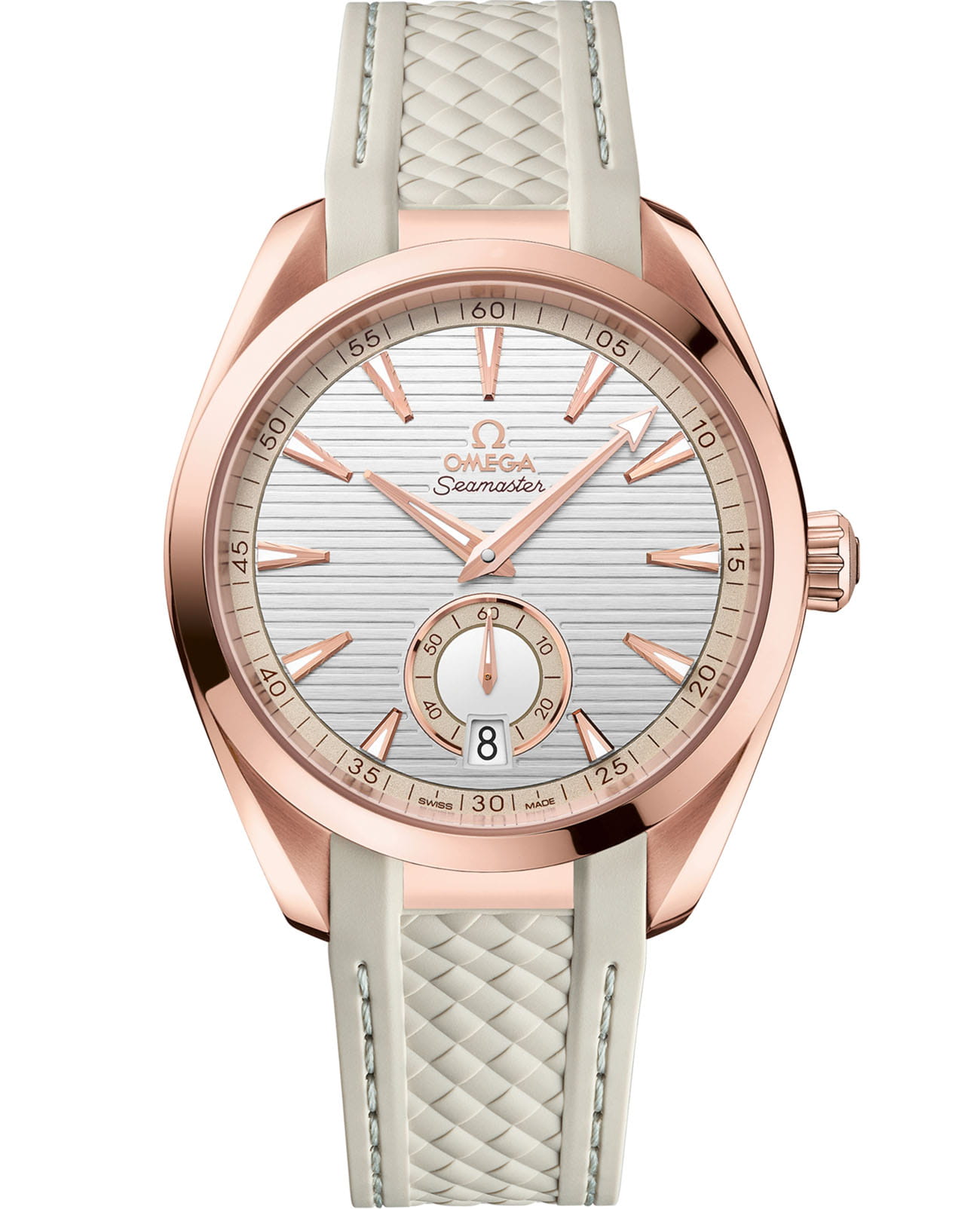 Мужские наручные часы Omega Seamaster Aqua Terra выполнены в корпусе из нержавеющей стали и 18К Sedna™ золота , диаметром 41 мм , толщиной 13,2 мм , ширина между ушками — 20 мм , общий вес составляет около 151 граммов .Циферблат с горизонтальным узором «тиковое дерево» имеет окошко даты в положении 6 часов и дополнительный циферблат малой секундной стрелки с черным кольцом. Стрелки и индексы выполнены из 18К Sedna™ золота и покрыты белым люминесцентным составом Super-LumiNovaЛюминесцентное покрытиеПозволяет считывать показания времени в темноте. Производители наносят на стрелки, часовые индексы, безель или поверхность циферблата светонакопительный состав, дающий холодное свечение., обеспечивающим читаемость в темноте. Минутная шкала и малый циферблат дополнительно обработаны пескоструйным методом для повышения контраста. Стекло — выпуклое сапфировое стекло сапфировое стеклоСапфировое стеклоПрочный и надёжный материал из кристалла сапфира синтетического происхождения, характеризующийся особой твёрдостью и устойчивостью к царапинам и повреждениям. с двусторонним антибликовым покрытием антибликовое покрытиеАнтибликовое покрытиеСлой оксида металла в 0,13-0,3 микрон, благодаря которому стекло часов не бликует и не отражает свет. Антибликовое покрытие уменьшает отражение света в 10 раз, обеспечивая отличную читаемость показателей циферблата., задняя крышка прозрачная, украшена волнообразным узором. Механизм — механический с автоподзаводом , калибр OMEGA Master Chronometer 8917, сертифицированный METAS и COSC. Обладает запасом хода до 60 часов , антимагнитными свойствами и точностью от 0 до +5 секунд в сутки благодаря коаксиальному спуску и балансу из кремния. Мосты и платина механизма имеют родиевое покрытие и декор Женевские волны. Водозащита — 15 АТМ (150 метров) , что позволяет использовать часы в воде, включая плавание и дайвинг. Часы оснащены каучуковым ремешком, застёжка — раскладная, с двойной системой блокировки. Это технологичная модель для делового и активного образа жизни, сочетающая морское наследие, швейцарское качество и современные стандарты.