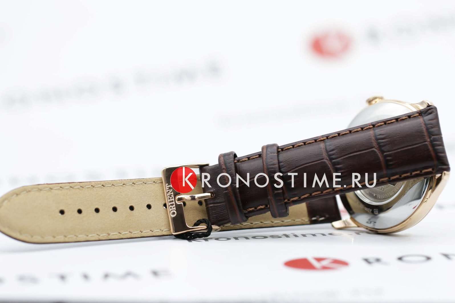 Orient Classic Open Heart AG00001S — это элегантные классические часы с утонченным дизайном и надежным механизмом. Корпус диаметром 43 мм выполнен из нержавеющей стали с PVD-покрытиемPVDУльтратонкое покрытие наносится в технике вакуумного напыления, сочетает в себе нитрид титана особой прочности со слоем золота или оксида хрома. Несёт в себе декоративную или защитную функцию. розового цвета, что придает модели изысканный и благородный вид. Циферблат шампанского оттенка украшен римскими цифрами и черными стрелками, обеспечивая четкость отображения времени. Окошко "Open Heart" на отметке 9 часов позволяет наблюдать за работой механизма. Защиту циферблата обеспечивает минеральное стеклоМинеральное стеклоМинеральное стекло представляет собой искусственно выращенный минерал кварца. Такое стекло отличается особой устойчивостью к повреждениям и царапинам. Уступает по некоторым качествам сапфировому стеклу. с выпуклой формой. Внутри установлен автоматический механизм Orient калибра F6T22 с возможностью ручного подзавода и функцией стоп-секунды, обеспечивающий точность и запас хода до 40 часов. Модель комплектуется коричневым кожаным ремешком с тиснением под крокодила, а классическая застёжка обеспечивает комфортное и надежное ношение. Водонепроницаемость 50 метров защищает часы от брызг и кратковременного контакта с водой, делая их идеальным выбором для повседневного использования.