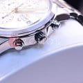 Серебристый аксессуар имеет люминесцентную подсветкуЛюминесцентное покрытиеПозволяет считывать показания времени в темноте. Производители наносят на стрелки, часовые индексы, безель или поверхность циферблата светонакопительный состав, дающий холодное свечение., что позволяет пользоваться часами в темноте. Полезными функциями являются секундомер и отображение даты. Японский кварцевый механизм обеспечивает высокую точность хода. Модель сделана из стали 316L, материал ценится за привлекательный внешний вид, устойчивость к повреждениям. Минеральное стекло не допускает появления царапин.
