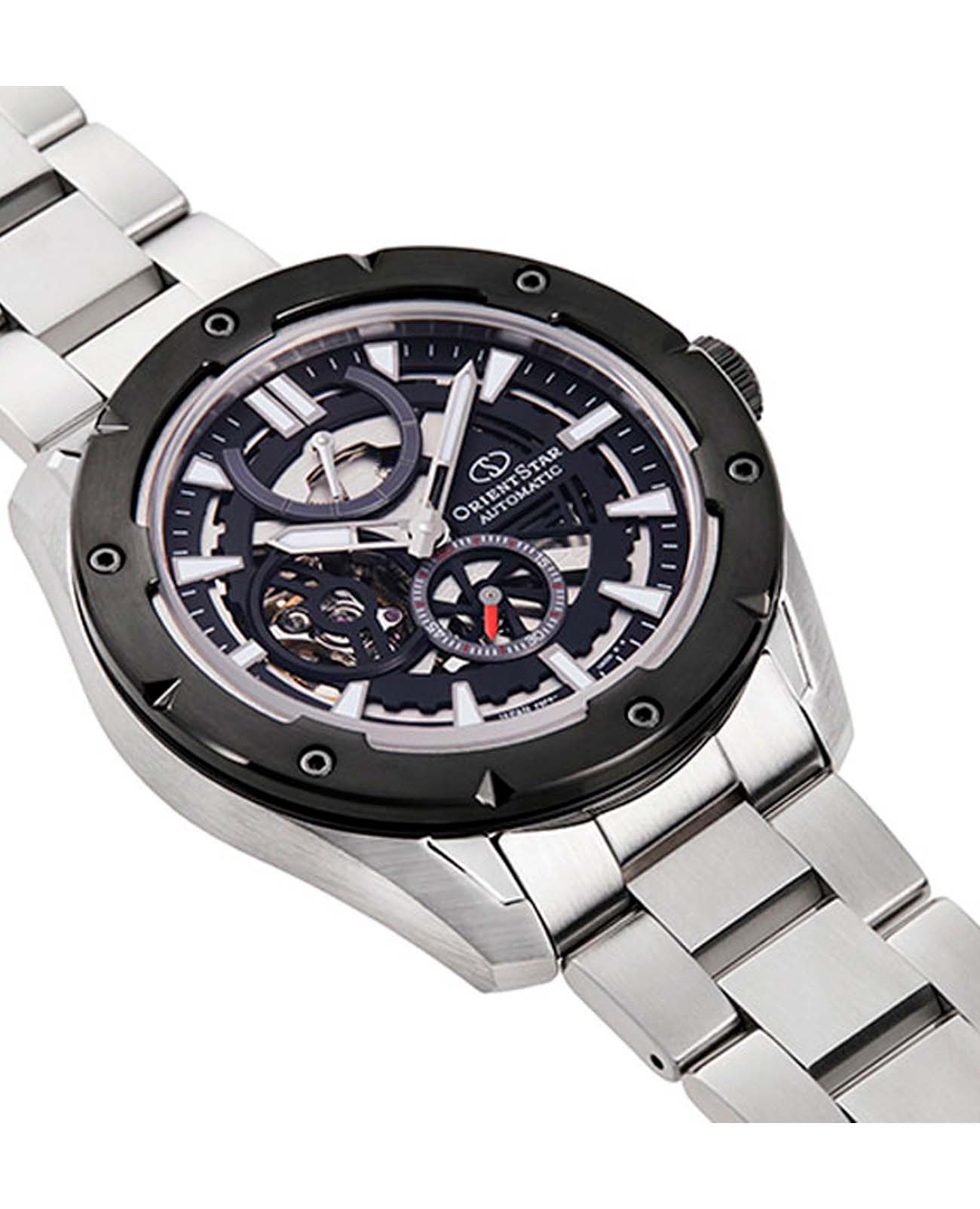 Мужские механические часы с автоподзаводом Orient Contemporary RK-AV0A01B — это стильный и функциональный аксессуар, сочетающий в себе современный дизайн и передовые технологии. Часы оснащены сапфировым стекломСапфировое стеклоПрочный и надёжный материал из кристалла сапфира синтетического происхождения, характеризующийся особой твёрдостью и устойчивостью к царапинам и повреждениям., которое обеспечивает превосходную видимость циферблата и высокую устойчивость к царапинам. Корпус и браслет выполнены из нержавеющей стали, что подчеркивает их долговечность, прочность и элегантность. БезельБезельВнешний ободок, закрепляющий стекло. В спортивных часах так называется поворотное кольцо с делениями на циферблате, выполняет роль таймера – замеряет отрезки времени на шкале. Неподвижный безель – элемент декора. Однонаправленно вращающийся безель на дайверских часах позволяет фиксировать моменты погружения и выныривания на поверхность. с PVD-покрытиемPVDУльтратонкое покрытие наносится в технике вакуумного напыления, сочетает в себе нитрид титана особой прочности со слоем золота или оксида хрома. Несёт в себе декоративную или защитную функцию., украшенный стильными винтами, добавляет часам современный и брутальный вид.