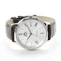 Одной из особенностей данной модели является функция stop-second, которая останавливает секундную стрелку при заводе часов, что помогает точнее установить текущее время. Класс водозащиты 50 метров обеспечит защиту от случайных брызг или капель дождя, хотя для плавания такие часы не рекомендуются. Кожаный ремешок с классической застежкой дополняет общий стиль, придавая часам универсальность и элегантность.
