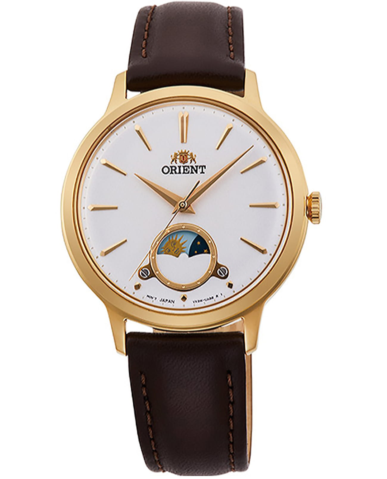 Женские кварцевые наручные часы Orient RA-KB0003S (RA-KB0003S10B) коллекции Sun & Moon Classic. Калибр механизма — VX3WE. Максимально допустимая погрешность точности хода +20/-20 секунд в месяц. На данной модели отображается время суток (день/ночь). Кожаный ремешок. На корпус нанесено стойкое PVD покрытие. Водонепроницаемость WR (3 атм).