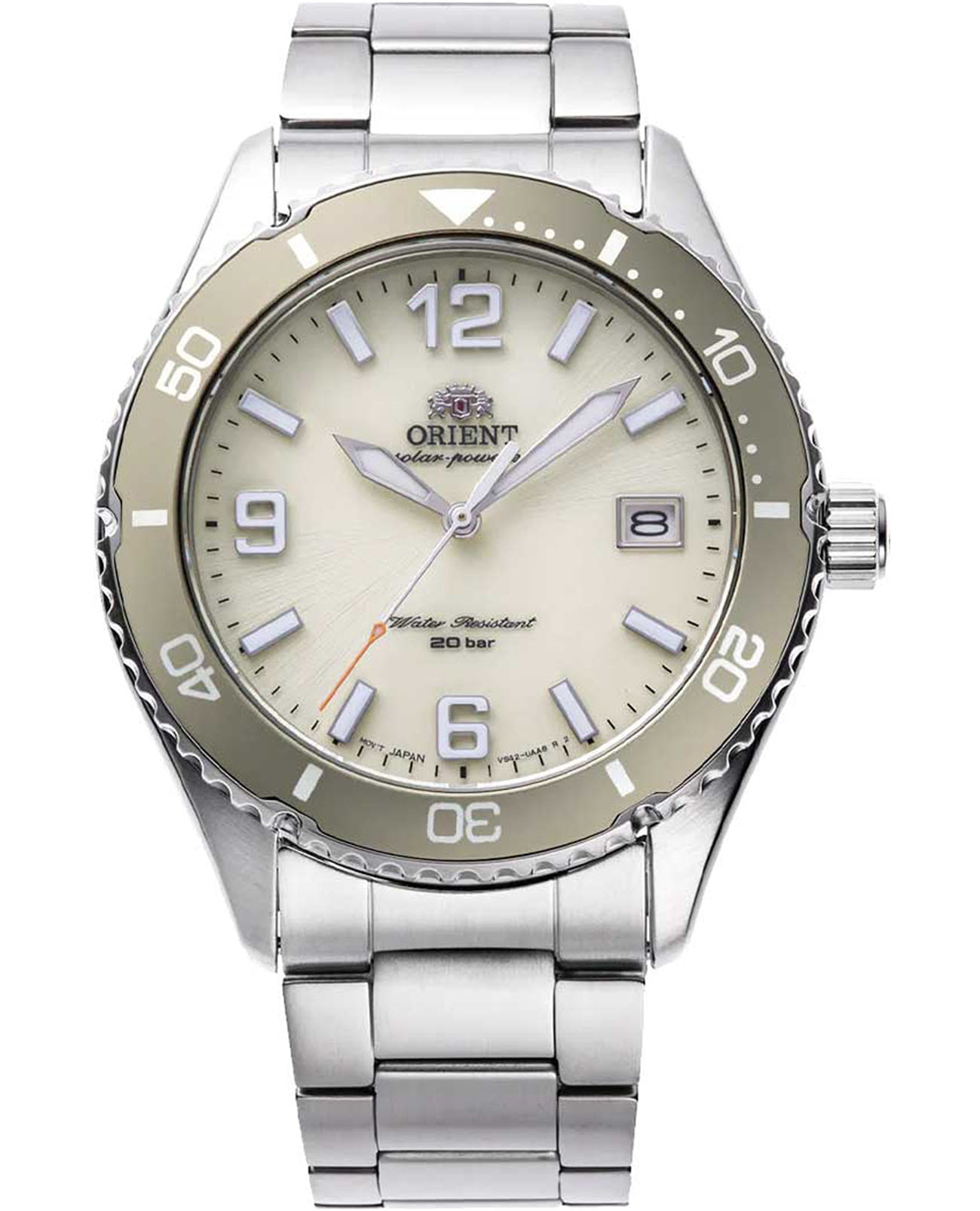 Мужские элегантные кварцевые часы Orient Mako Kamasu RA-WJ0003S выполнены в классическом спортивном стиле и оснащены солнечной батареей. Циферблат оформлен с использованием технологии Sunray (солнечные лучи), обеспечивая эффектный визуальный блеск. Метки в виде штрихов и арабских цифр. Эта изысканная модель имеет люминесцентное покрытиеЛюминесцентное покрытиеПозволяет считывать показания времени в темноте. Производители наносят на стрелки, часовые индексы, безель или поверхность циферблата светонакопительный состав, дающий холодное свечение. на стрелках и метках для отличной читаемости в темноте. Окошко даты расположено в положении 3 часов. Корпус изготовлен из стали. Часы оснащены вращающимся в одном направлении безелемБезельВнешний ободок, закрепляющий стекло. В спортивных часах так называется поворотное кольцо с делениями на циферблате, выполняет роль таймера – замеряет отрезки времени на шкале. Неподвижный безель – элемент декора. Однонаправленно вращающийся безель на дайверских часах позволяет фиксировать моменты погружения и выныривания на поверхность. с алюминиевой вставкой, который удобен при подсчёте времени. Защиту циферблата обеспечивает сапфировое стеклоСапфировое стеклоПрочный и надёжный материал из кристалла сапфира синтетического происхождения, характеризующийся особой твёрдостью и устойчивостью к царапинам и повреждениям., устойчивое к царапинам и повреждениям. Водозащита 200 WR позволяет использовать часы даже при активных водных занятиях. Часы установлены на стальной браслет с раскладной застёжкойРаскладная застёжкаТакой тип застёжки используется только на браслетах из металла. Она никогда не раскрывается полностью, происходит разделение на 2 и более частей. Раскладывающая застёжка снизит вероятность потери часов к минимуму., обеспечивающей надёжную фиксацию на руке. Это сочетание технологичности, прочности и эргономики для уверенных в себе людей.