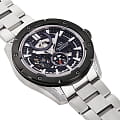 Мужские механические часы с автоподзаводом Orient Contemporary RK-AV0A01B — это стильный и функциональный аксессуар, сочетающий в себе современный дизайн и передовые технологии. Часы оснащены сапфировым стекломСапфировое стеклоПрочный и надёжный материал из кристалла сапфира синтетического происхождения, характеризующийся особой твёрдостью и устойчивостью к царапинам и повреждениям., которое обеспечивает превосходную видимость циферблата и высокую устойчивость к царапинам. Корпус и браслет выполнены из нержавеющей стали, что подчеркивает их долговечность, прочность и элегантность. БезельБезельВнешний ободок, закрепляющий стекло. В спортивных часах так называется поворотное кольцо с делениями на циферблате, выполняет роль таймера – замеряет отрезки времени на шкале. Неподвижный безель – элемент декора. Однонаправленно вращающийся безель на дайверских часах позволяет фиксировать моменты погружения и выныривания на поверхность. с PVD-покрытиемPVDУльтратонкое покрытие наносится в технике вакуумного напыления, сочетает в себе нитрид титана особой прочности со слоем золота или оксида хрома. Несёт в себе декоративную или защитную функцию., украшенный стильными винтами, добавляет часам современный и брутальный вид. Модель оснащена автоматическим механизмом с 24 камнями и частотой 21,600 полуколебаний в час, что гарантирует точность и плавность хода. Ретроградный указатель запаса хода до 50 часов наглядно отображает оставшуюся энергию, а функция stop-second (остановка секундной стрелки) обеспечивает точную установку времени. Циферблат часов отличается уникальным дизайном. Секундная стрелка вынесена на отдельный циферблат, что придает часам динамичный и современный вид. Сквозь прозрачные окошки можно наблюдать за работой механизма, добавляя часам элемент технической изысканности. Класс водонепроницаемости 100 метров делает часы подходящими для плавания, ныряния и занятий другими водными видами спорта. Стальной браслет с раскладной застёжкойРаскладная застёжкаТакой тип застёжки используется только на браслетах из металла. Она никогда не раскрывается полностью, происходит разделение на 2 и более частей. Раскладывающая застёжка снизит вероятность потери часов к минимуму. обеспечивает комфортное и надежное крепление на запястье, делая часы удобными для ежедневного ношения.