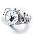 Через прозрачное окошко на циферблате открывается завораживающий вид на сложный внутренний механизм, демонстрирующий красоту каждого движения. Циферблат с метками в виде штрихов дополнен отдельным циферблатом для отображения числа и фаз Луны, что добавляет часам особого шарма и уникальности.