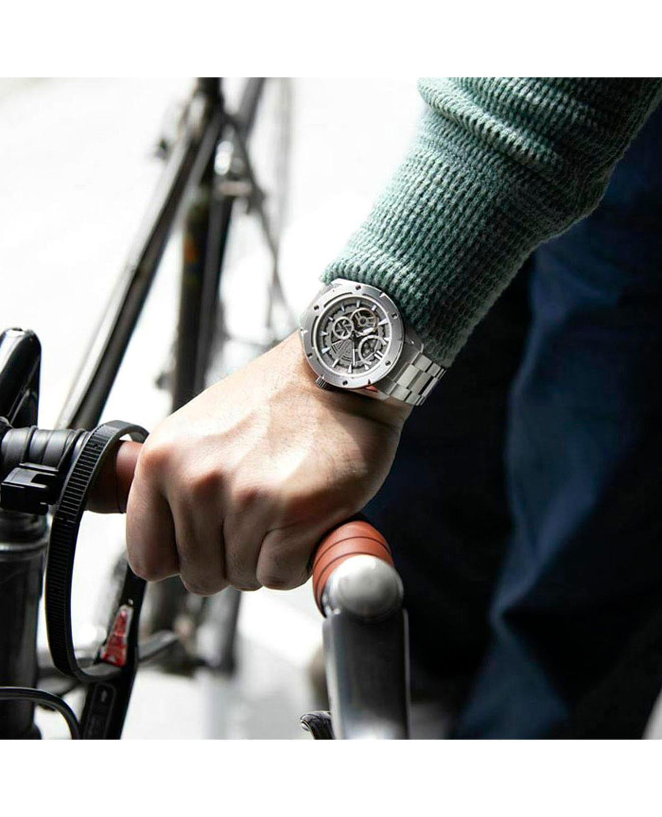 Класс водонепроницаемости 100 метров делает часы подходящими для плавания, ныряния и занятий другими водными видами спорта. Стальной браслет с раскладной застёжкойРаскладная застёжкаТакой тип застёжки используется только на браслетах из металла. Она никогда не раскрывается полностью, происходит разделение на 2 и более частей. Раскладывающая застёжка снизит вероятность потери часов к минимуму. обеспечивает комфортное и надежное крепление на запястье, делая часы удобными для ежедневного ношения.