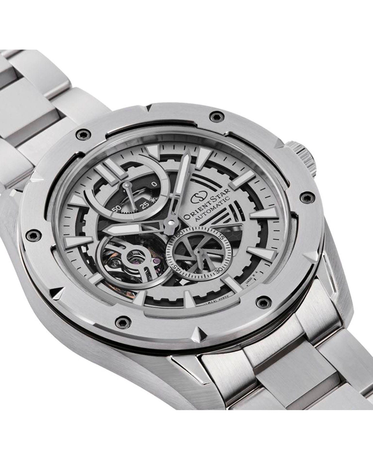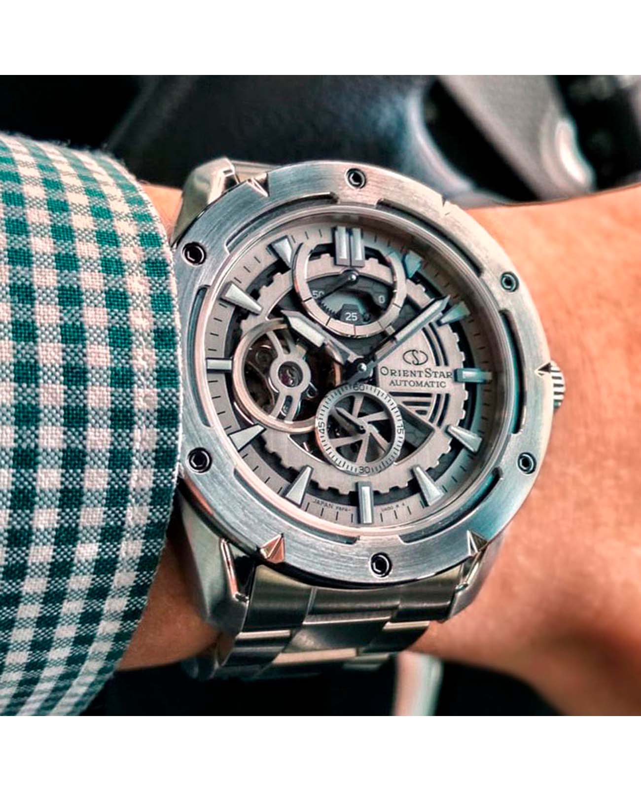 Мужские механические часы с автоподзаводом Orient Contemporary RK-AV0A02S — это стильный и функциональный аксессуар, сочетающий в себе современный дизайн и передовые технологии. Часы оснащены сапфировым стекломСапфировое стеклоПрочный и надёжный материал из кристалла сапфира синтетического происхождения, характеризующийся особой твёрдостью и устойчивостью к царапинам и повреждениям., которое обеспечивает превосходную видимость циферблата и высокую устойчивость к царапинам. Корпус и браслет выполнены из нержавеющей стали, что подчеркивает их долговечность, прочность и элегантность. БезельБезельВнешний ободок, закрепляющий стекло. В спортивных часах так называется поворотное кольцо с делениями на циферблате, выполняет роль таймера – замеряет отрезки времени на шкале. Неподвижный безель – элемент декора. Однонаправленно вращающийся безель на дайверских часах позволяет фиксировать моменты погружения и выныривания на поверхность. из стали, украшенный стильными винтами, добавляет часам современный и брутальный вид, делая их заметным акцентом в любом образе.