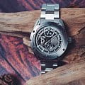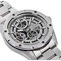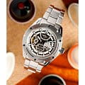 Циферблат часов отличается уникальным дизайном. Секундная стрелка вынесена на отдельный циферблат, что придает часам динамичный и современный вид. Сквозь прозрачные окошки можно наблюдать за работой механизма, добавляя часам элемент технической изысканности.