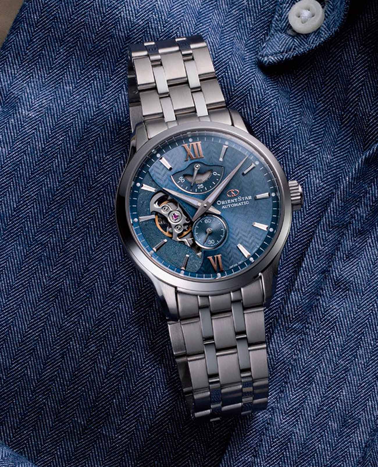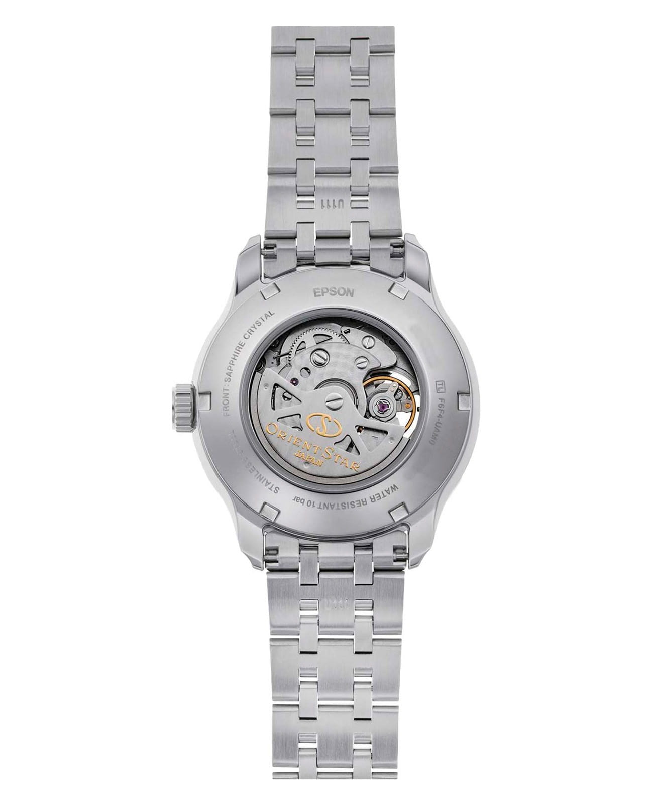 Часы Orient Star RK-AV0B08L — это мужская модель, которая сочетает в себе современный дизайн и передовые технологии. Корпус выполнен из нержавеющей стали, имеет круглую форму с диаметром 41 мм и толщиной 13,6 мм. Часы оснащены уникальным двухслойным циферблатом, где верхний слой выполнен в виде узора «елочка», а нижний — с узором «пейсли», что создает эффект глубины и текстуры, напоминающей ткань костюма. Защита циферблата обеспечивается сапфировым стекломСапфировое стеклоПрочный и надёжный материал из кристалла сапфира синтетического происхождения, характеризующийся особой твёрдостью и устойчивостью к царапинам и повреждениям. с антибликовым покрытиемАнтибликовое покрытиеСлой оксида металла в 0,13-0,3 микрон, благодаря которому стекло часов не бликует и не отражает свет. Антибликовое покрытие уменьшает отражение света в 10 раз, обеспечивая отличную читаемость показателей циферблата., что повышает читаемость и устойчивость к царапинам .