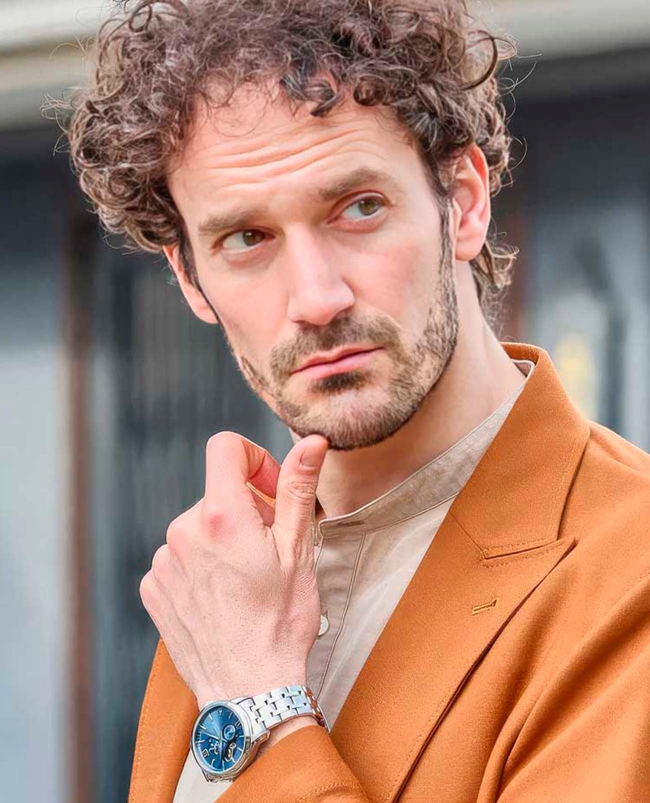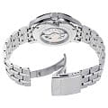Браслет выполнен из нержавеющей стали и оснащен раскладной застежкойРаскладная застёжкаТакой тип застёжки используется только на браслетах из металла. Она никогда не раскрывается полностью, происходит разделение на 2 и более частей. Раскладывающая застёжка снизит вероятность потери часов к минимуму., которая обеспечивает удобство и надежность при ношении.