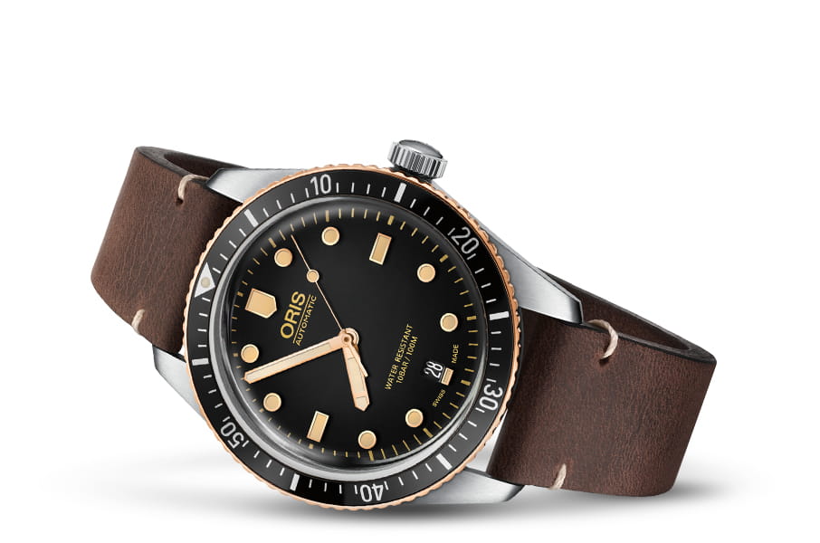 Многокомпонентный корпус из бронзы и стали, вращающийся безельБезельВнешний ободок, закрепляющий стекло. В спортивных часах так называется поворотное кольцо с делениями на циферблате, выполняет роль таймера – замеряет отрезки времени на шкале. Неподвижный безель – элемент декора. Однонаправленно вращающийся безель на дайверских часах позволяет фиксировать моменты погружения и выныривания на поверхность. с минутной шкалой . Сапфировое стеклоСапфировое стеклоПрочный и надёжный материал из кристалла сапфира синтетического происхождения, характеризующийся особой твёрдостью и устойчивостью к царапинам и повреждениям., выпуклое с обеих сторон, внутреннее антибликовое покрытие. Прозрачная задняя крышка из сапфирового стеклаСапфировое стеклоПрочный и надёжный материал из кристалла сапфира синтетического происхождения, характеризующийся особой твёрдостью и устойчивостью к царапинам и повреждениям.. Стрелки и метки с люминесцентным покрытиемЛюминесцентное покрытиеПозволяет считывать показания времени в темноте. Производители наносят на стрелки, часовые индексы, безель или поверхность циферблата светонакопительный состав, дающий холодное свечение.. Завинчивающаяся заводная головка.