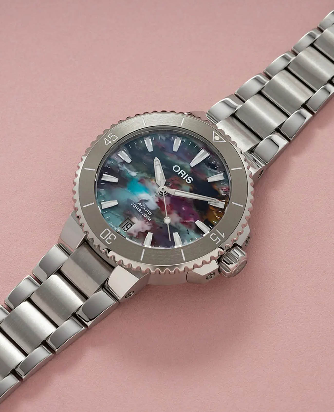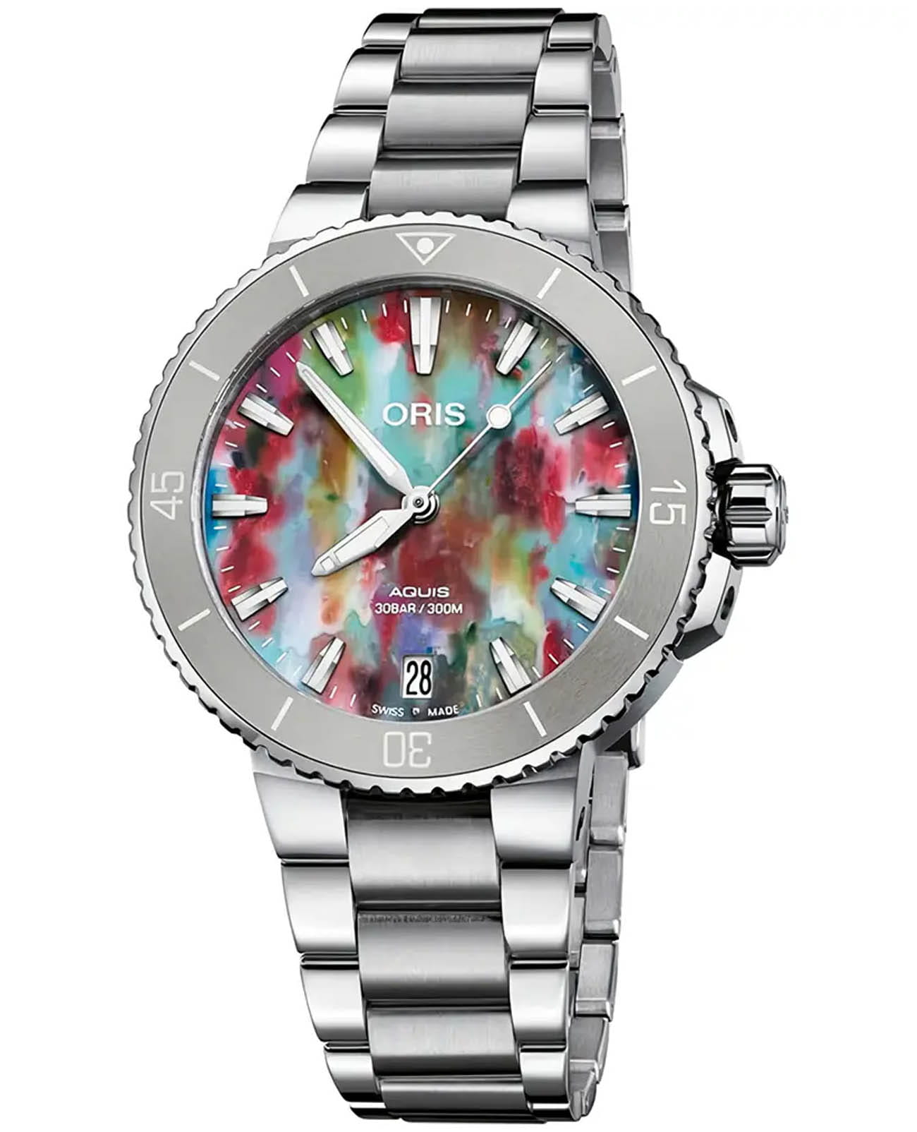 Красочный циферблат часов Aquis Date Upcycle 36,5 мм изготовлен из переработанных пластиковых бутылок. Это не просто демонстрация - это символ нашей веры в то, что вместе мы можем изменить мир к лучшему.
