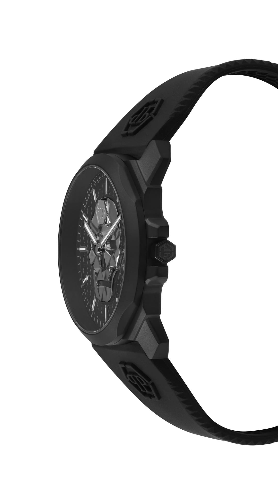 Мужские кварцевые часы с фирменным изображением черепа Philipp Plein The Skull King PWLAA0422, кварцевый механизм с высокой точностью. Класс водозащиты: 50 метров, позволит защитить корпус от случайных брызг или капель дождя. Корпус часов изготовлен из стали с IP-покрытиемIP-покрытиеМетод ионного напыления. Демонстрирует повышенную устойчивость к истиранию, окислению и химическим веществам. Под воздействием высокого давления и температуры около 1500°C молекулы металла надёжно соединяются с частицами корпуса часов. черного цвета. Черный силиконовый ремешок шириной 26 мм, стандартная застежка. Прочное минеральное стеклоМинеральное стеклоМинеральное стекло представляет собой искусственно выращенный минерал кварца. Такое стекло отличается особой устойчивостью к повреждениям и царапинам. Уступает по некоторым качествам сапфировому стеклу. устойчивое к мелким механическим повреждениям.