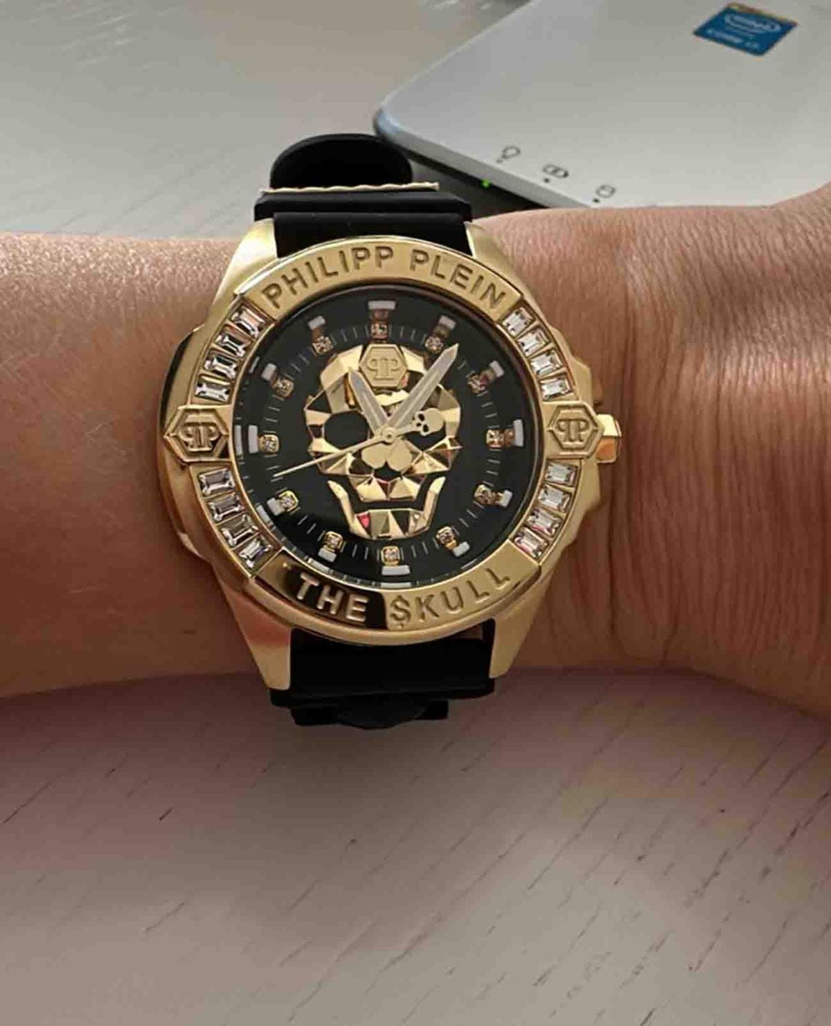 Яркие унисекс часы с минеральным стекломМинеральное стеклоМинеральное стекло представляет собой искусственно выращенный минерал кварца. Такое стекло отличается особой устойчивостью к повреждениям и царапинам. Уступает по некоторым качествам сапфировому стеклу. Philipp Plein The Skull PWNAA0122, кварцевый механизм с высокой точностью. Класс водозащиты: 50 метров, позволит защитить корпус от случайных брызг или капель дождя. Корпус часов изготовлен из стали с IP-покрытиемIP-покрытиеМетод ионного напыления. Демонстрирует повышенную устойчивость к истиранию, окислению и химическим веществам. Под воздействием высокого давления и температуры около 1500°C молекулы металла надёжно соединяются с частицами корпуса часов.. Круглый стальной корпус украшен кристаллами Swarovski. Циферблат с метками в виде точек украшенных кристаллами Swarovski, дополнен трехмерным граненым черепом. Шестигранная заводная головка с защитой. Силиконовый ремешок украшен объемным черепом и стальной вставкой.