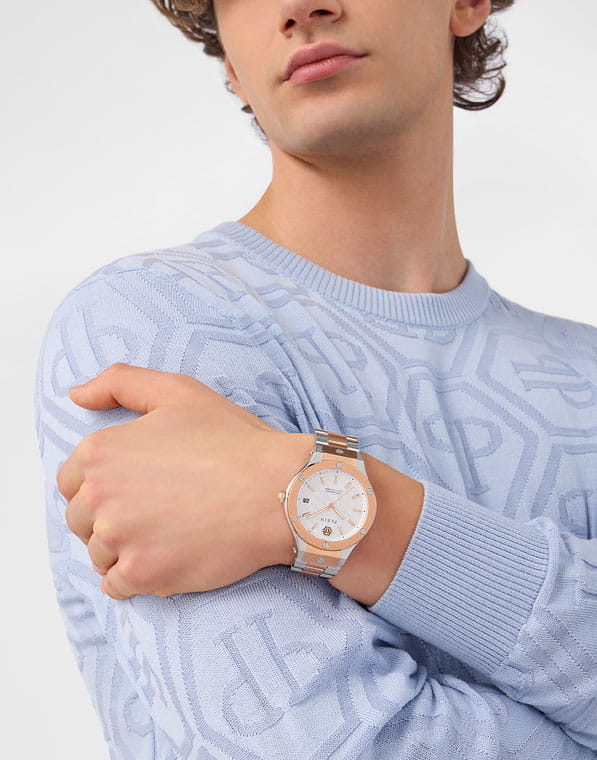 Philipp Plein Plein Underdog PWUFA0625 - это дерзкие и бескомпромиссные часы, воплощающие бунтарский дух бренда. Диаметр корпуса из прочной нержавеющей стали равен 44 мм. Стальной браслет на застёжке-бабочке с кнопкамиЗастёжка "бабочка"Такой вид застёжки дополняется предохранителями, помогающими избежать случайного раскрытия браслета. Обладают изящным исполнением. обеспечивает надёжную фиксацию и комфортное ношение. Метки в виде штрихов. Минеральное стеклоМинеральное стеклоМинеральное стекло представляет собой искусственно выращенный минерал кварца. Такое стекло отличается особой устойчивостью к повреждениям и царапинам. Уступает по некоторым качествам сапфировому стеклу. защищает циферблат от царапин. Люминесцентное покрытиеЛюминесцентное покрытиеПозволяет считывать показания времени в темноте. Производители наносят на стрелки, часовые индексы, безель или поверхность циферблата светонакопительный состав, дающий холодное свечение. стрелок и меток позволит следить за временем даже в полной темноте. БезельБезельВнешний ободок, закрепляющий стекло. В спортивных часах так называется поворотное кольцо с делениями на циферблате, выполняет роль таймера – замеряет отрезки времени на шкале. Неподвижный безель – элемент декора. Однонаправленно вращающийся безель на дайверских часах позволяет фиксировать моменты погружения и выныривания на поверхность. с PVD-покрытиемPVDУльтратонкое покрытие наносится в технике вакуумного напыления, сочетает в себе нитрид титана особой прочности со слоем золота или оксида хрома. Несёт в себе декоративную или защитную функцию.. Граненая заводная головка. Влагозащита: 50 метров, позволит защитить корпус от случайных брызг или капель дождя. Идеальный аксессуар для тех, кто ценит индивидуальность и не боится выделяться из толпы.