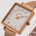 Женские кварцевые часы Pierre Lannier LeCare 008F928. Центральные часовая и минутная стрелки. Белый текстурированный циферблат. Квадратный корпус выполнен из полированной нержавеющей стали с PVD-покрытиемPVDУльтратонкое покрытие наносится в технике вакуумного напыления, сочетает в себе нитрид титана особой прочности со слоем золота или оксида хрома. Несёт в себе декоративную или защитную функцию.. Стальной браслет выполнен в технике миланского плетения, раскладная застёжкаРаскладная застёжкаТакой тип застёжки используется только на браслетах из металла. Она никогда не раскрывается полностью, происходит разделение на 2 и более частей. Раскладывающая застёжка снизит вероятность потери часов к минимуму.. Прочное минеральное стеклоМинеральное стеклоМинеральное стекло представляет собой искусственно выращенный минерал кварца. Такое стекло отличается особой устойчивостью к повреждениям и царапинам. Уступает по некоторым качествам сапфировому стеклу., устойчивое к мелким механическим повреждениям. Водостойкость: 30 метров, позволит защитить корпус от случайных брызг или капель дождя.