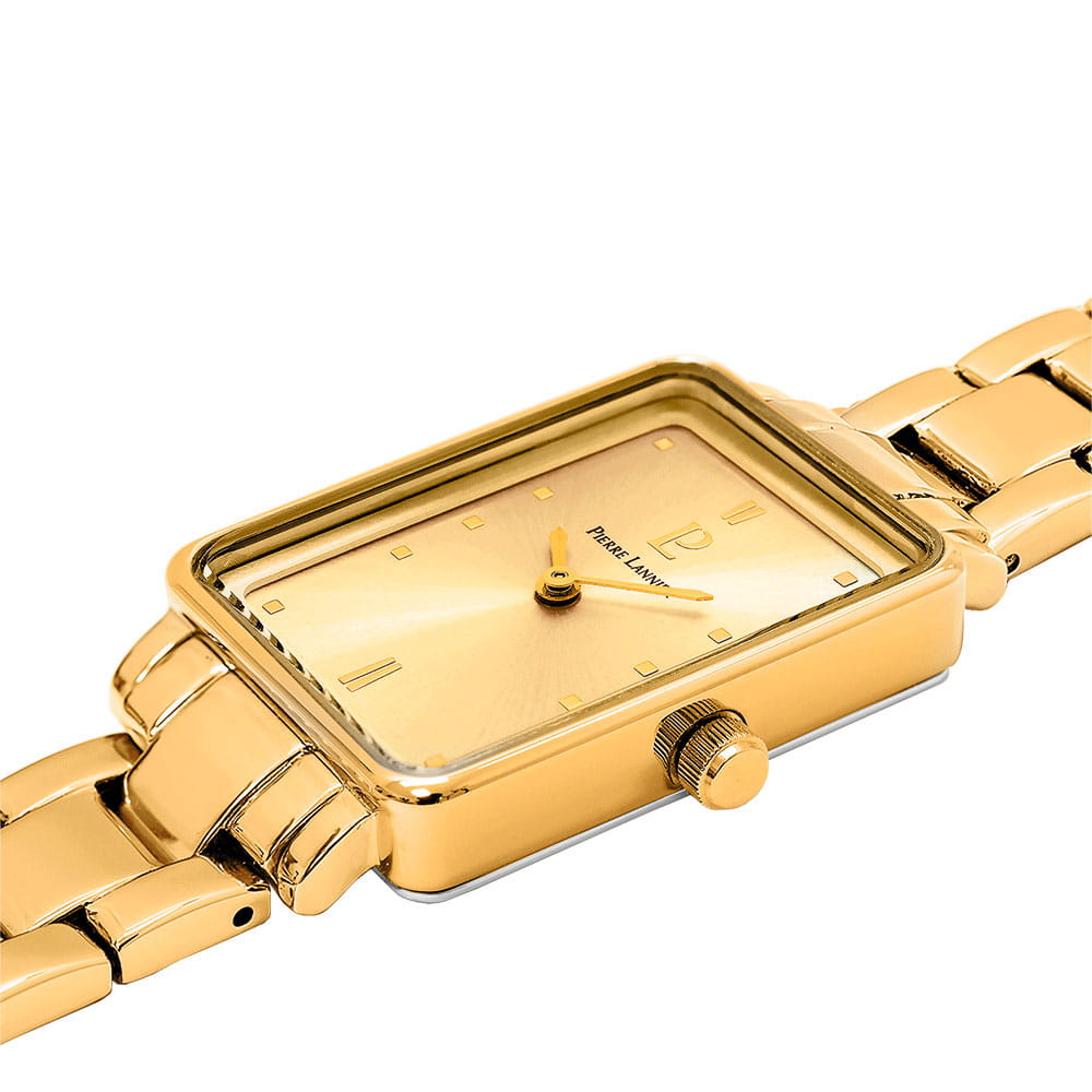 Женские  Pierre Lannier Ariane 052J542. Минеральное стеклоМинеральное стеклоМинеральное стекло представляет собой искусственно выращенный минерал кварца. Такое стекло отличается особой устойчивостью к повреждениям и царапинам. Уступает по некоторым качествам сапфировому стеклу. устойчивое к мелким механическим повреждениям. Центральные часовая, минутная и секундная стрелки. Корпус выполнен из полированной нержавеющей стали с IP-покрытиемIP-покрытиеМетод ионного напыления. Демонстрирует повышенную устойчивость к истиранию, окислению и химическим веществам. Под воздействием высокого давления и температуры около 1500°C молекулы металла надёжно соединяются с частицами корпуса часов... Водостойкость: 30 метров, позволит защитить корпус от случайных брызг или капель дождя. Размер корпуса составляет 21 х 28,4 мм, толщина 6,2 мм. Стальной браслет на раскладной застёжкеРаскладная застёжкаТакой тип застёжки используется только на браслетах из металла. Она никогда не раскрывается полностью, происходит разделение на 2 и более частей. Раскладывающая застёжка снизит вероятность потери часов к минимуму. с IP-покрытиемIP-покрытиеМетод ионного напыления. Демонстрирует повышенную устойчивость к истиранию, окислению и химическим веществам. Под воздействием высокого давления и температуры около 1500°C молекулы металла надёжно соединяются с частицами корпуса часов...