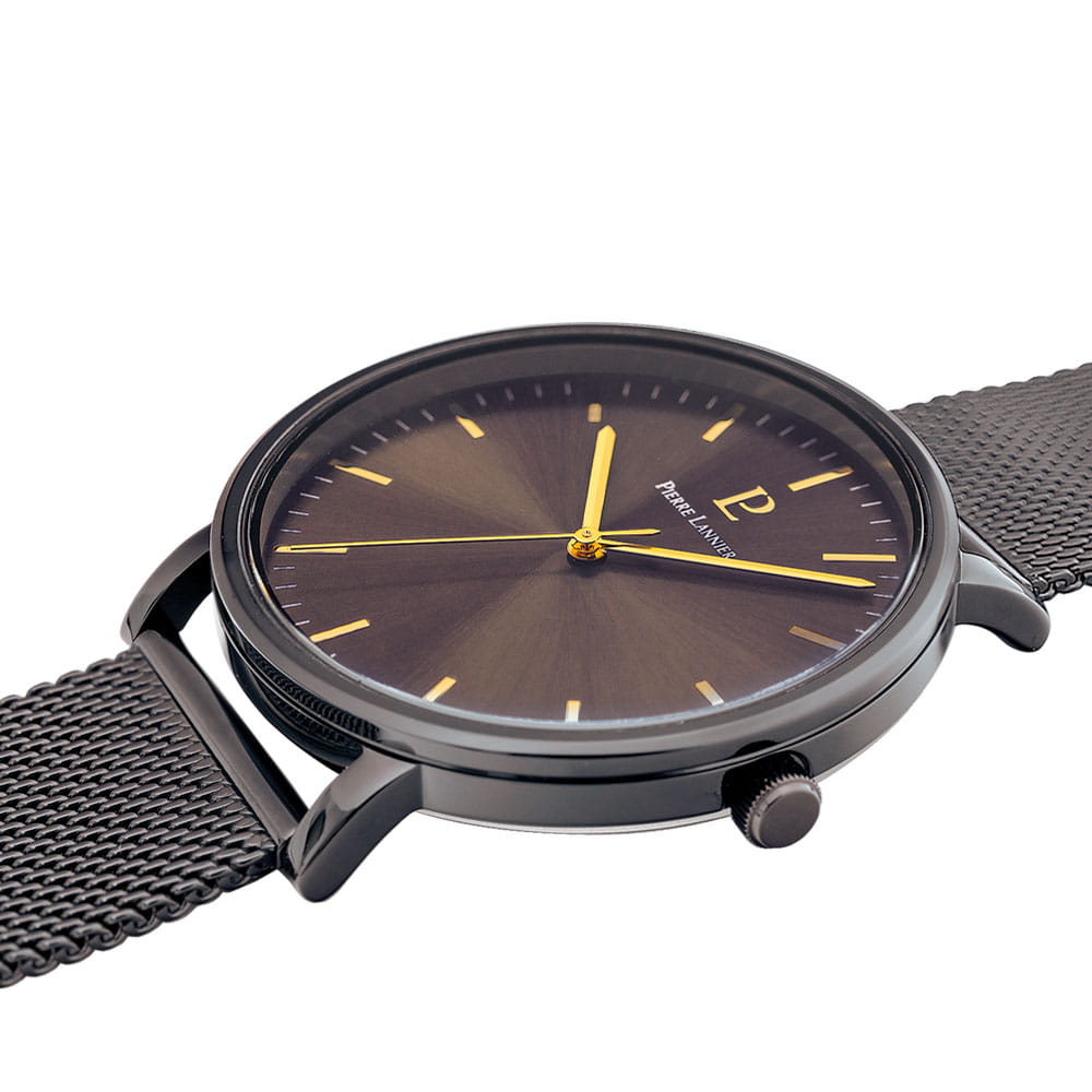 Мужские кварцевые часы Pierre Lannier 218F499 представляют собой стильный и надежный аксессуар с корпусом из нержавеющей стали, который отличается прочностью, устойчивостью к коррозии и царапинам, а также гипоаллергенными свойствами. Модель оснащена высокоточным кварцевым механизмом, не требующим регулярного завода и обеспечивающим стабильную работу. Циферблат защищен прочным минеральным стекломМинеральное стеклоМинеральное стекло представляет собой искусственно выращенный минерал кварца. Такое стекло отличается особой устойчивостью к повреждениям и царапинам. Уступает по некоторым качествам сапфировому стеклу., устойчивым к ударам и повседневным нагрузкам. Часы обладают водонепроницаемостью WR50 (5 бар), что позволяет использовать их при мытье рук, принятии душа или кратковременном плавании в бассейне. Часы поставляются в фирменной упаковке с официальной гарантией производителя на 2 года, что подтверждает их качество и надежность.