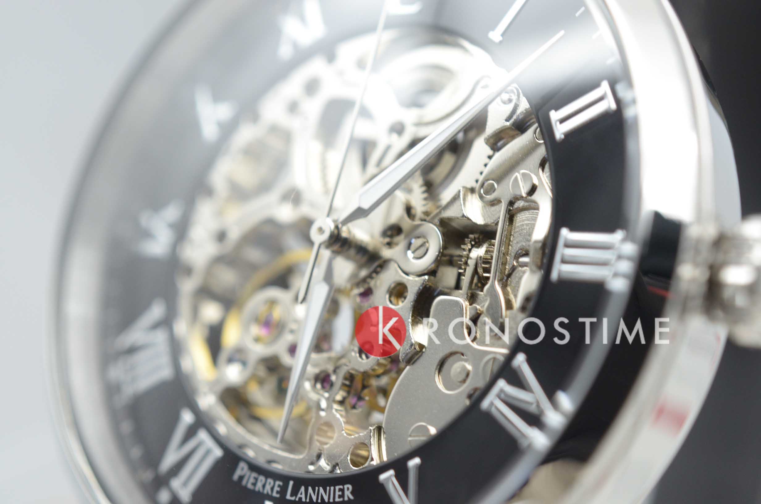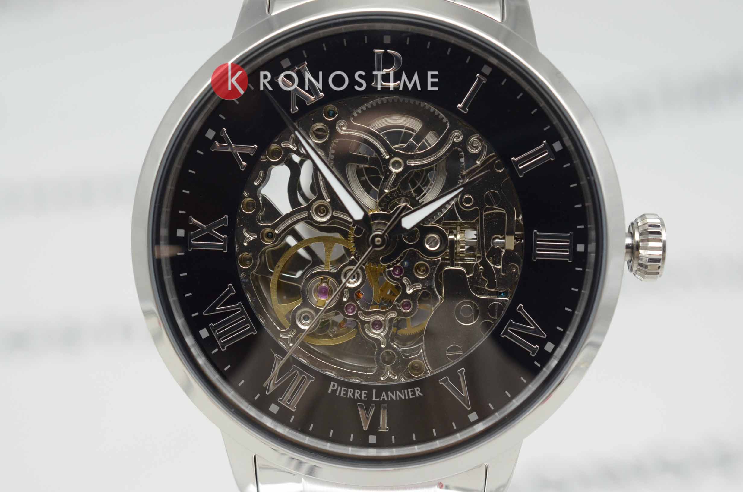 Мужские механические часы с автоподзаводом Pierre Lannier Automatic 317B131. Минеральное стеклоМинеральное стеклоМинеральное стекло представляет собой искусственно выращенный минерал кварца. Такое стекло отличается особой устойчивостью к повреждениям и царапинам. Уступает по некоторым качествам сапфировому стеклу. устойчивое к мелким механическим повреждениям. Центральные часовая, минутная и секундная стрелки. Корпус и браслет выполнены из нержавеющей стали. Водостойкость: 50 метров, позволит защитить корпус от случайных брызг или капель дождя. Стрелки с люминесцентным покрытиемЛюминесцентное покрытиеПозволяет считывать показания времени в темноте. Производители наносят на стрелки, часовые индексы, безель или поверхность циферблата светонакопительный состав, дающий холодное свечение.. Черный скелетонизированный циферблат. Браслет на раскладной застёжкеРаскладная застёжкаТакой тип застёжки используется только на браслетах из металла. Она никогда не раскрывается полностью, происходит разделение на 2 и более частей. Раскладывающая застёжка снизит вероятность потери часов к минимуму.. Прозрачная задняя крышка.