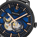 Мужские механические часы с автоподзаводом Pierre Lannier Trio 335B469. Минеральное стеклоМинеральное стеклоМинеральное стекло представляет собой искусственно выращенный минерал кварца. Такое стекло отличается особой устойчивостью к повреждениям и царапинам. Уступает по некоторым качествам сапфировому стеклу. устойчивое к мелким механическим повреждениям. 12/24х часовой формат времени. Центральные часовая и минутная стрелки, секундная стрелка вынесена на малый циферблат. Корпус выполнен из нержавеющей стали с IP-покрытиемIP-покрытиеМетод ионного напыления. Демонстрирует повышенную устойчивость к истиранию, окислению и химическим веществам. Под воздействием высокого давления и температуры около 1500°C молекулы металла надёжно соединяются с частицами корпуса часов.. Водостойкость: 50 метров, позволит защитить корпус от случайных брызг или капель дождя. Стальной браслет миланского плетения с раскладной застёжкойРаскладная застёжкаТакой тип застёжки используется только на браслетах из металла. Она никогда не раскрывается полностью, происходит разделение на 2 и более частей. Раскладывающая застёжка снизит вероятность потери часов к минимуму.. Синий циферблат с открытым балансом хода. Стрелки с люминесцентным покрытиемЛюминесцентное покрытиеПозволяет считывать показания времени в темноте. Производители наносят на стрелки, часовые индексы, безель или поверхность циферблата светонакопительный состав, дающий холодное свечение..