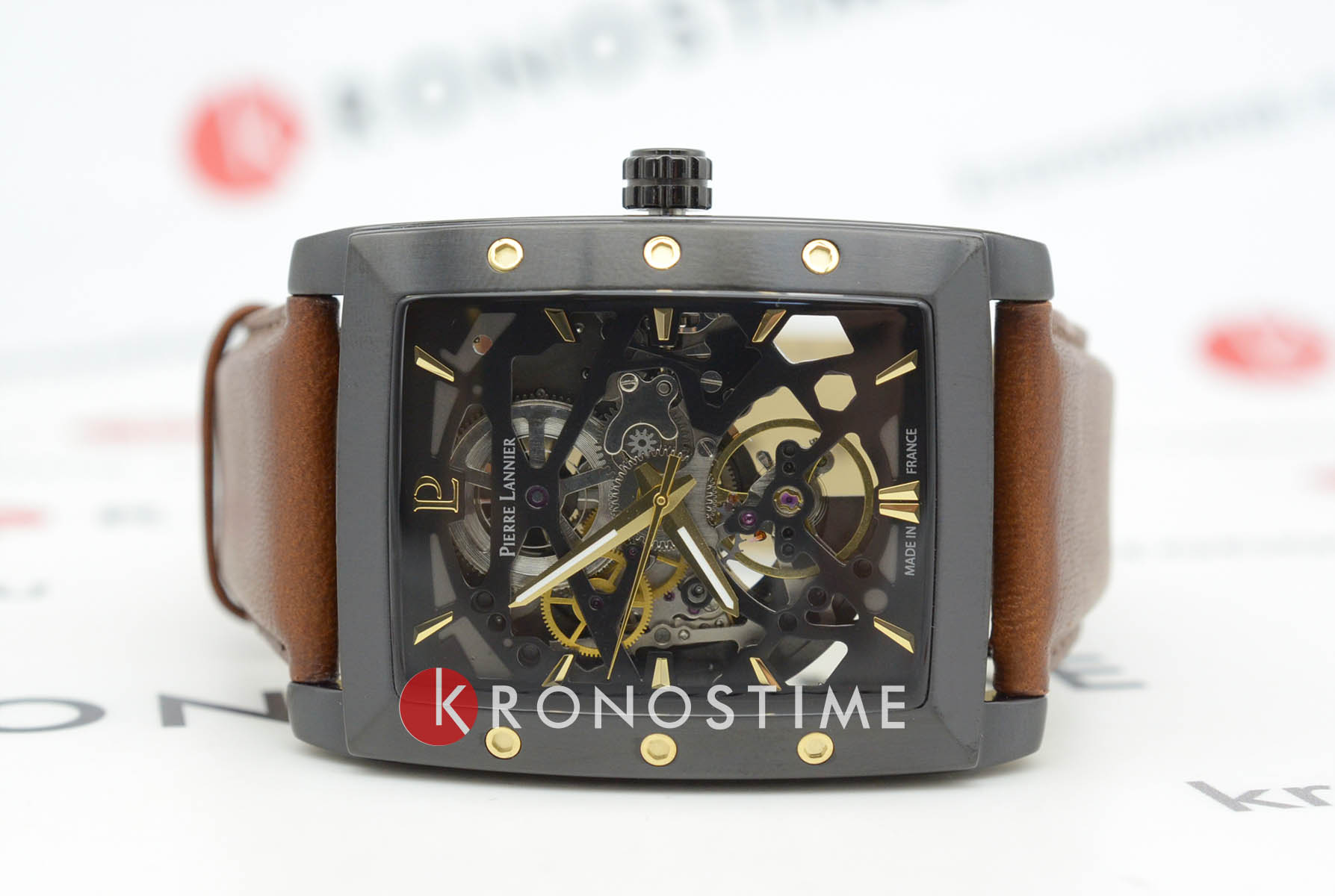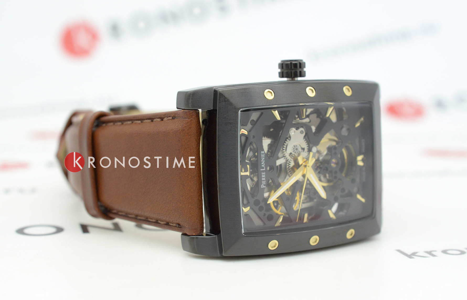 Мужские механические часы с автоподзаводом Pierre Lannier Hector 339A434. Минеральное стеклоМинеральное стеклоМинеральное стекло представляет собой искусственно выращенный минерал кварца. Такое стекло отличается особой устойчивостью к повреждениям и царапинам. Уступает по некоторым качествам сапфировому стеклу. устойчивое к мелким механическим повреждениям. Скелетонизированный циферблат. Центральные часовая, минутная и секундная стрелки. Стрелки с люминесцентным покрытиемЛюминесцентное покрытиеПозволяет считывать показания времени в темноте. Производители наносят на стрелки, часовые индексы, безель или поверхность циферблата светонакопительный состав, дающий холодное свечение.. Корпус выполнен из нержавеющей стали с IP-покрытиемIP-покрытиеМетод ионного напыления. Демонстрирует повышенную устойчивость к истиранию, окислению и химическим веществам. Под воздействием высокого давления и температуры около 1500°C молекулы металла надёжно соединяются с частицами корпуса часов.. Размер корпуса составляет 42,6 х 36,6 мм. Водостойкость 30 метров, позволит защитить корпус от случайных брызг или капель дождя. Кожаный ремешок на стандартной застёжке.