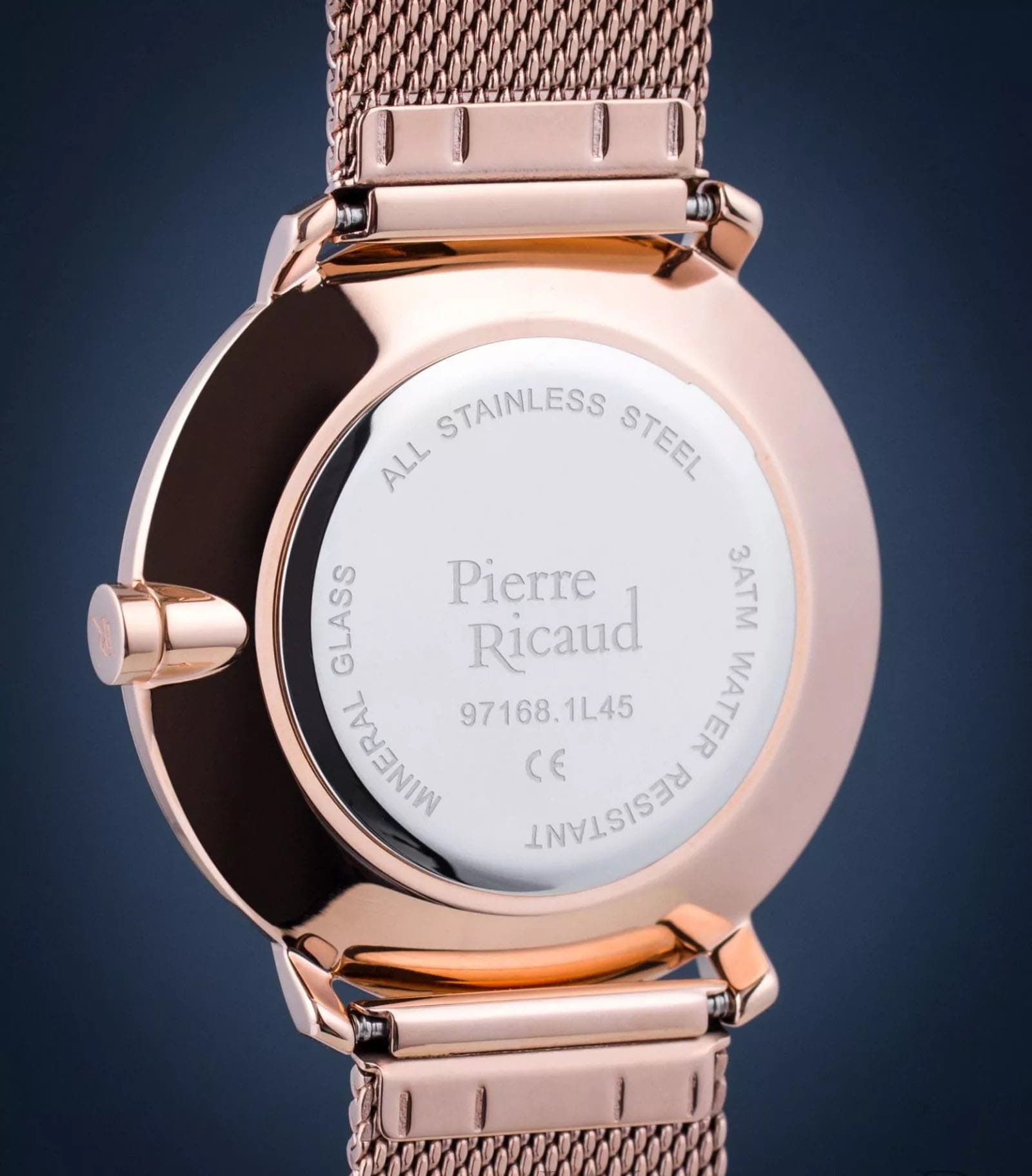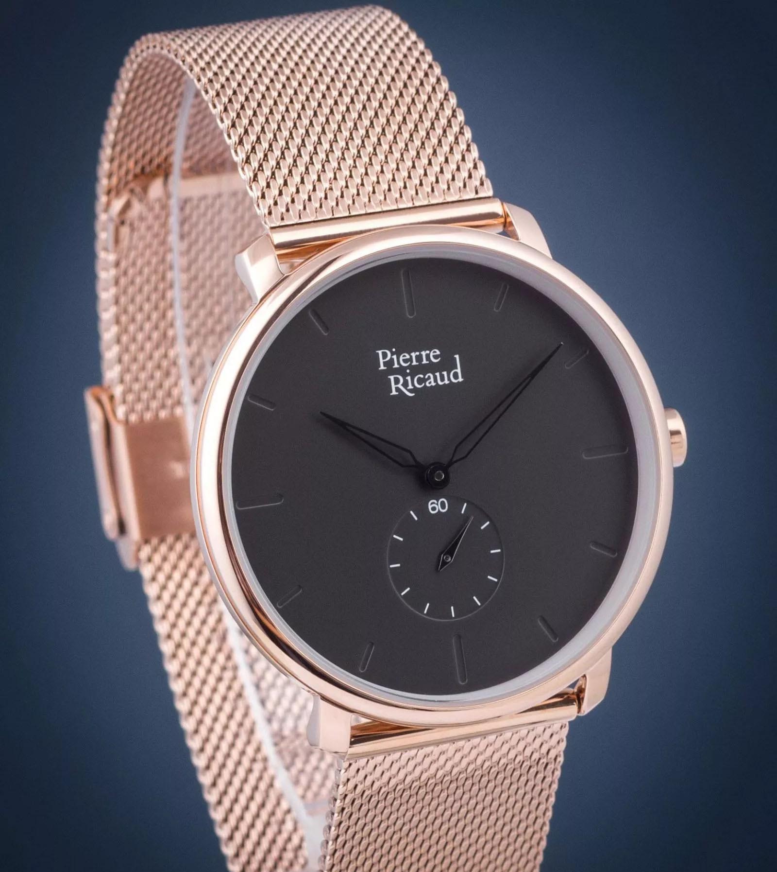 Мужские часы с минеральным стекломМинеральное стеклоМинеральное стекло представляет собой искусственно выращенный минерал кварца. Такое стекло отличается особой устойчивостью к повреждениям и царапинам. Уступает по некоторым качествам сапфировому стеклу. Pierre Ricaud P97168.9116Q, кварцевый механизм с высокой точностью. Класс водозащиты: 30 метров, позволит защитить корпус от случайных брызг или капель дождя. Корпус часов изготовлен из стали с IP-покрытиемIP-покрытиеМетод ионного напыления. Демонстрирует повышенную устойчивость к истиранию, окислению и химическим веществам. Под воздействием высокого давления и температуры около 1500°C молекулы металла надёжно соединяются с частицами корпуса часов.. Стальной браслет на раскладной застёжкеРаскладная застёжкаТакой тип застёжки используется только на браслетах из металла. Она никогда не раскрывается полностью, происходит разделение на 2 и более частей. Раскладывающая застёжка снизит вероятность потери часов к минимуму. с IP-покрытиемIP-покрытиеМетод ионного напыления. Демонстрирует повышенную устойчивость к истиранию, окислению и химическим веществам. Под воздействием высокого давления и температуры около 1500°C молекулы металла надёжно соединяются с частицами корпуса часов.. Вынесенная секундная стрелка.