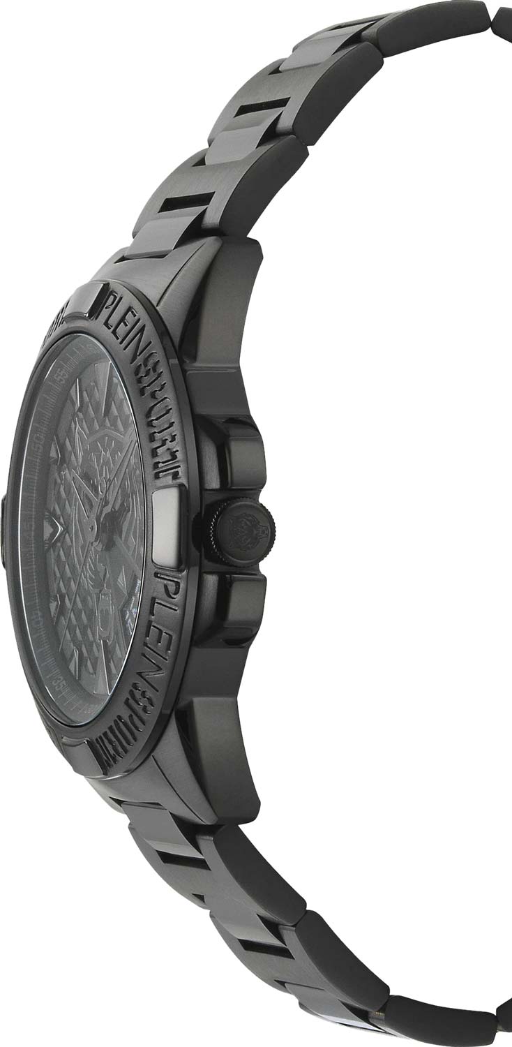 Немецкие мужские кварцевые часы с минеральным стекломМинеральное стеклоМинеральное стекло представляет собой искусственно выращенный минерал кварца. Такое стекло отличается особой устойчивостью к повреждениям и царапинам. Уступает по некоторым качествам сапфировому стеклу. Plein Sport Touchdown PSFBA1323, кварцевый механизм с высокой точностью. Класс водозащиты: 50 метров, позволит защитить корпус от случайных брызг или капель дождя. Корпус выполнен из стали с IP-покрытиемIP-покрытиеМетод ионного напыления. Демонстрирует повышенную устойчивость к истиранию, окислению и химическим веществам. Под воздействием высокого давления и температуры около 1500°C молекулы металла надёжно соединяются с частицами корпуса часов.. Стальной браслет на раскладной застёжкеРаскладная застёжкаТакой тип застёжки используется только на браслетах из металла. Она никогда не раскрывается полностью, происходит разделение на 2 и более частей. Раскладывающая застёжка снизит вероятность потери часов к минимуму. с IP-покрытиемIP-покрытиеМетод ионного напыления. Демонстрирует повышенную устойчивость к истиранию, окислению и химическим веществам. Под воздействием высокого давления и температуры около 1500°C молекулы металла надёжно соединяются с частицами корпуса часов.. Минеральное стеклоМинеральное стеклоМинеральное стекло представляет собой искусственно выращенный минерал кварца. Такое стекло отличается особой устойчивостью к повреждениям и царапинам. Уступает по некоторым качествам сапфировому стеклу. устойчивое к мелким механическим повреждениям. Окошко даты находится в положении между 4 и 5 часов.