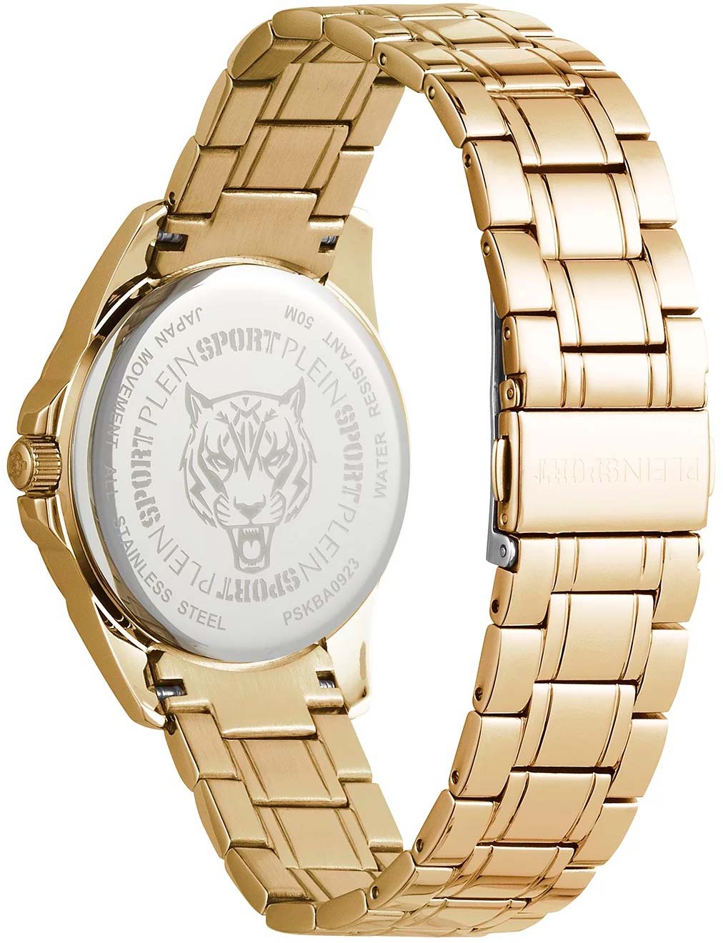 Немецкие женские кварцевые часы с минеральным стекломМинеральное стеклоМинеральное стекло представляет собой искусственно выращенный минерал кварца. Такое стекло отличается особой устойчивостью к повреждениям и царапинам. Уступает по некоторым качествам сапфировому стеклу. Plein Sport Glam PSKBA0923, кварцевый механизм с высокой точностью. Класс водозащиты: 50 метров, позволит защитить корпус от случайных брызг или капель дождя. Корпус часов изготовлен из стали с IP-покрытиемIP-покрытиеМетод ионного напыления. Демонстрирует повышенную устойчивость к истиранию, окислению и химическим веществам. Под воздействием высокого давления и температуры около 1500°C молекулы металла надёжно соединяются с частицами корпуса часов.. Стальной браслет на раскладной застёжкеРаскладная застёжкаТакой тип застёжки используется только на браслетах из металла. Она никогда не раскрывается полностью, происходит разделение на 2 и более частей. Раскладывающая застёжка снизит вероятность потери часов к минимуму. с IP-покрытиемIP-покрытиеМетод ионного напыления. Демонстрирует повышенную устойчивость к истиранию, окислению и химическим веществам. Под воздействием высокого давления и температуры около 1500°C молекулы металла надёжно соединяются с частицами корпуса часов.. Стрелки с люминесцентным покрытиемЛюминесцентное покрытиеПозволяет считывать показания времени в темноте. Производители наносят на стрелки, часовые индексы, безель или поверхность циферблата светонакопительный состав, дающий холодное свечение..