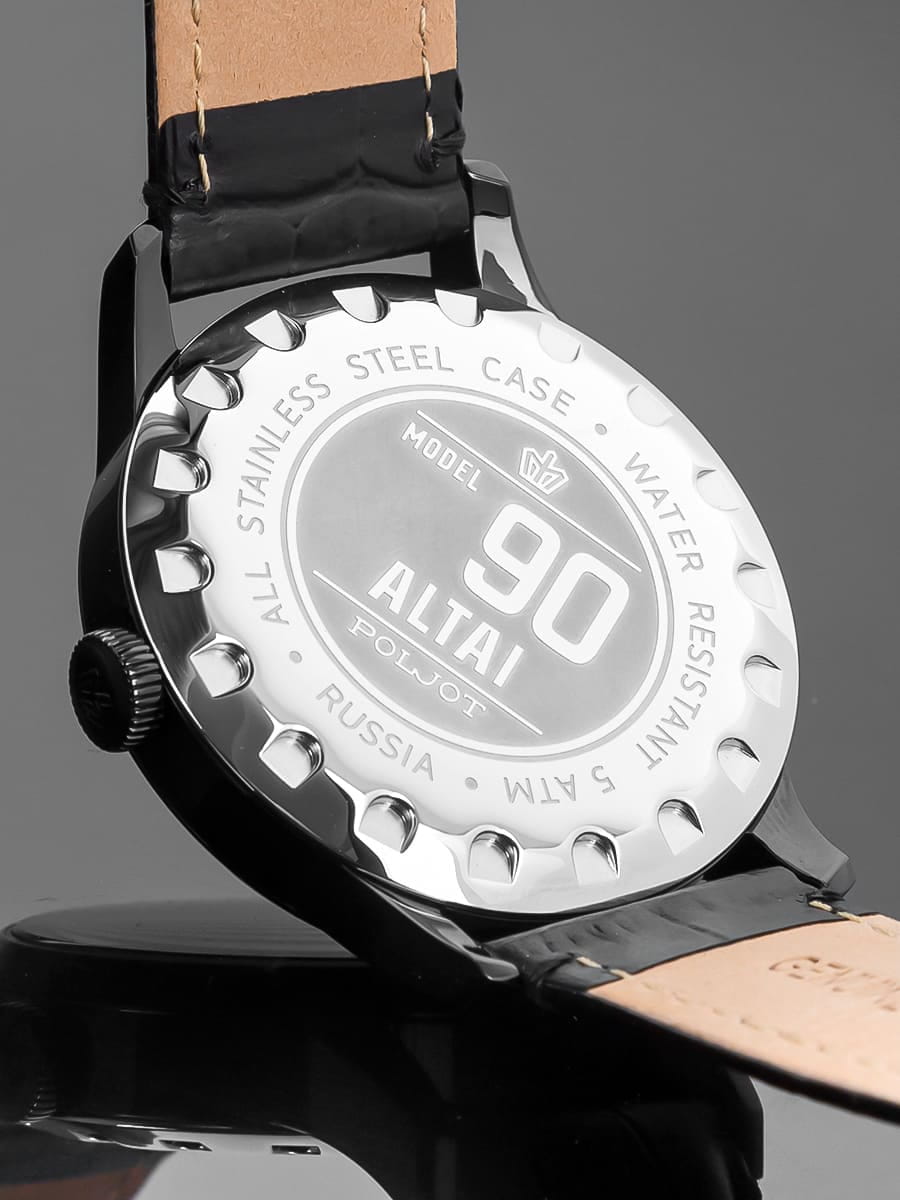 Poljot 8215.904221 — классические механические мужские часы с автоподзаводом, сочетающие сдержанный дизайн и надёжность российского часового производства. Корпус из нержавеющей стали с PVD-покрытиемPVDУльтратонкое покрытие наносится в технике вакуумного напыления, сочетает в себе нитрид титана особой прочности со слоем золота или оксида хрома. Несёт в себе декоративную или защитную функцию. подчёркивает строгость и универсальность модели, а циферблат с крупными арабскими цифрами и аккуратным окном даты на позиции «3 часов» обеспечивает превосходную читаемость. Стрелки и метки с люминесцентным покрытиемЛюминесцентное покрытиеПозволяет считывать показания времени в темноте. Производители наносят на стрелки, часовые индексы, безель или поверхность циферблата светонакопительный состав, дающий холодное свечение.. Механизм с автоподзаводом гарантирует стабильную работу и плавный ход стрелок. Прочное минеральное стеклоМинеральное стеклоМинеральное стекло представляет собой искусственно выращенный минерал кварца. Такое стекло отличается особой устойчивостью к повреждениям и царапинам. Уступает по некоторым качествам сапфировому стеклу. защищает циферблат от царапин, а ремешок из натуральной кожи придаёт часам современное и элегантное звучание. Poljot — это воплощение надёжности, классики и уверенного стиля, созданное для мужчин, предпочитающих традиционную механику и безупречный внешний вид.
