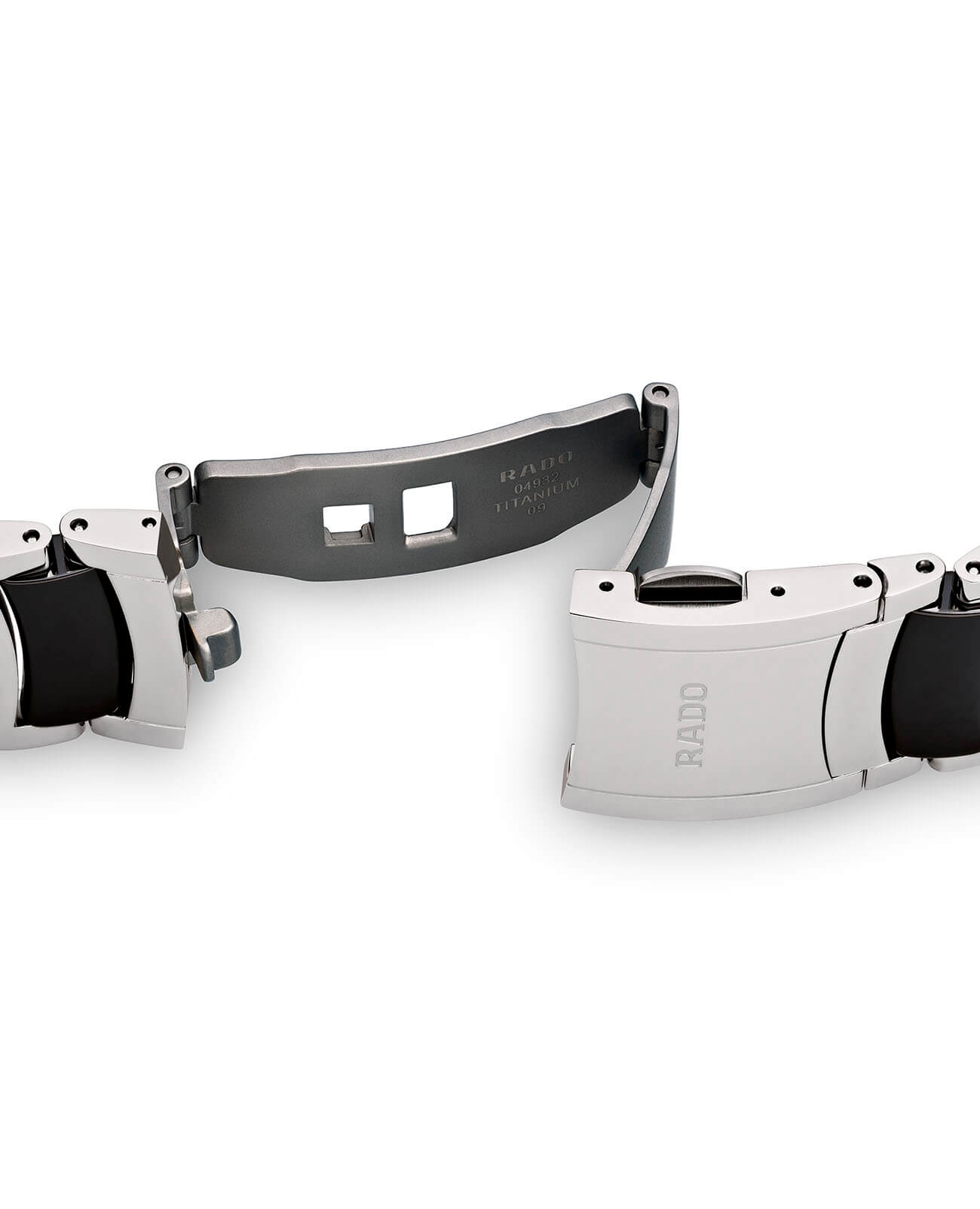 Серебристо-чёрный аксессуар всегда будет иметь актуальность, он представляет собой эталон классики. Строгий деловой костюм, дополненный часами Rado со вставками из высокотехнологичной керамикиВысокотехнологичная керамикаИнновационный запатентованный Rado материал с гладкой или матовой поверхностью. Керамика за счёт кристаллической структуры обладает повышенной устойчивостью от возникновения царапин. Материал способен принимать температуру тела человека, обеспечивая невероятный комфорт при ношении. на браслете, поможет создать образ делового и солидного человека. Высокоточный автоматический механизм ETA C07.611 с запасом хода 80 часов. Прозрачная задняя крышка. Корпус из хирургической стали 316L с чёрным PVD-покрытиемPVDУльтратонкое покрытие наносится в технике вакуумного напыления, сочетает в себе нитрид титана особой прочности со слоем золота или оксида хрома. Несёт в себе декоративную или защитную функцию.. Сапфировое стекло. Прямоугольное окошко даты. Диаметр корпуса: 38 мм.