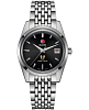 Швейцарские механические мужские часы Limited Edition из коллекции Golden Horse являются воплощением моделей 1957 года, выпущено всего 1957 экземпляров. Модель относится к премиальному сегменту, стильно смотрится чёрный узорчатый циферблат с контрастными элементами. Нижняя часть дополнена эмблемой в виде морских коньков, в верхней находится узнаваемый логотип Rado. Часы сделаны из нержавеющей стали 316L, как и первые аксессуары из линейки Golden Horse. Корпус защищает автоматический механизм ETA C07.611 с резервом хода 80 часов от ударов и повреждений. Задняя крышка имеет отличительную гравировку. Сапфировое стекло с покрытием «антиблик». Водостойкость до 5 бар. Отображение текущего числа. Диаметр корпуса: 37 мм. Производство и сборка: Швейцария.