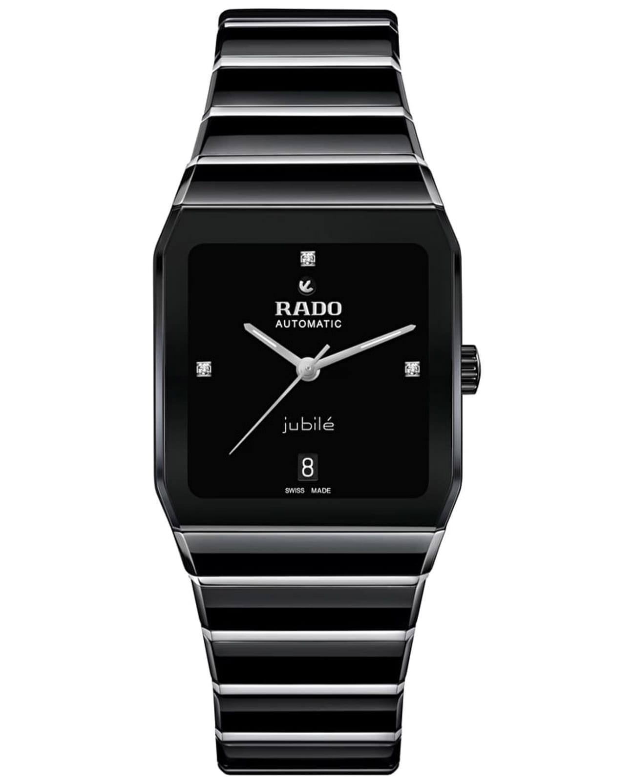 Мужские швейцарские механические часы Rado Anatom Automatic R10201712. Сапфировое стеклоСапфировое стеклоПрочный и надёжный материал из кристалла сапфира синтетического происхождения, характеризующийся особой твёрдостью и устойчивостью к царапинам и повреждениям. устойчивое к мелким механическим повреждениям. Корпус часов изготовлен из нержавеющей стали и керамики. Стрелки с люминесцентным покрытиемЛюминесцентное покрытиеПозволяет считывать показания времени в темноте. Производители наносят на стрелки, часовые индексы, безель или поверхность циферблата светонакопительный состав, дающий холодное свечение.. Венчает циферблат на отметке 12 часов культовый подвижный якорь, дополненный сдержанным окошком даты, расположенным на отметке 6 часов. Класс водозащиты: 50 метров, позволит защитить корпус от случайных брызг или капель дождя. Стальной браслет и керамика на застёжке-бабочке с кнопкамиЗастёжка "бабочка"Такой вид застёжки дополняется предохранителями, помогающими избежать случайного раскрытия браслета. Обладают изящным исполнением. . 3 бриллианта Top Wesselton полной огранки и стрелки цвета родия с белым покрытием Super-LumiNova® создают сияющий контраст на фоне глубины циферблата.