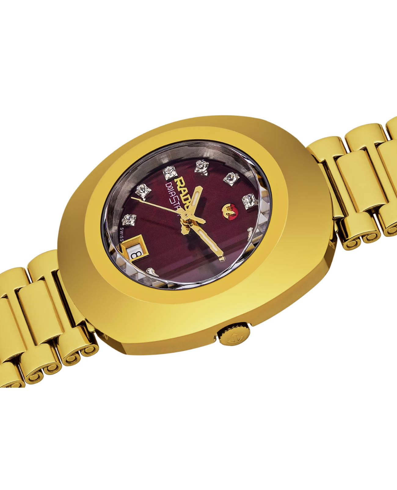 Женские часы Rado The Original Automatic R12416573 с надёжным автоматическим механизмом. Корпус и браслет часов выполнены из нержавеющей стали c PVD-покрытиемPVDУльтратонкое покрытие наносится в технике вакуумного напыления, сочетает в себе нитрид титана особой прочности со слоем золота или оксида хрома. Несёт в себе декоративную или защитную функцию.. Стальной браслет на раскладной застёжкеРаскладная застёжкаТакой тип застёжки используется только на браслетах из металла. Она никогда не раскрывается полностью, происходит разделение на 2 и более частей. Раскладывающая застёжка снизит вероятность потери часов к минимуму.. Класс водозащиты: 30 метров, позволит защитить корпус от случайных брызг или капель дождя. Окошко даты находится в положении 6 часов. Циферблат инкрустирован сапфирами. Стрелки и метки с люминесцентным покрытиемЛюминесцентное покрытиеПозволяет считывать показания времени в темноте. Производители наносят на стрелки, часовые индексы, безель или поверхность циферблата светонакопительный состав, дающий холодное свечение..