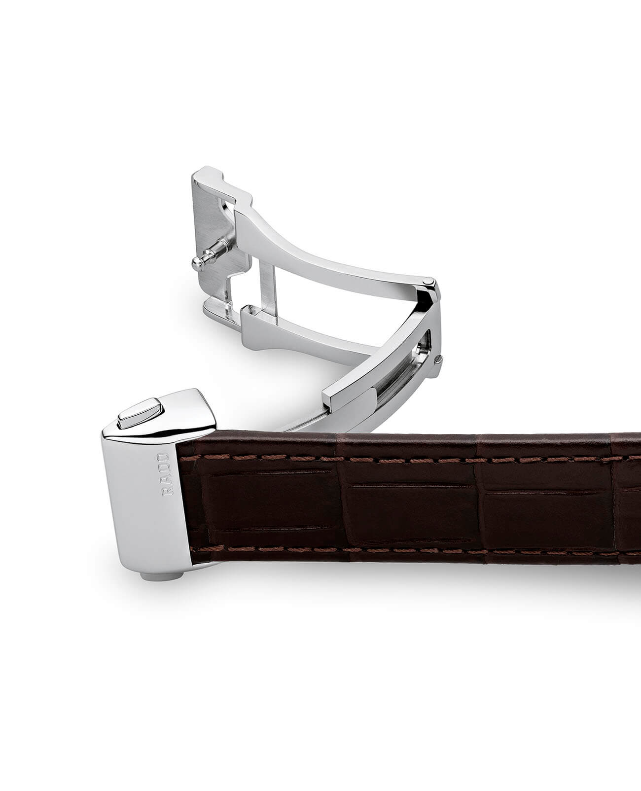 Премиальная модель станет главным украшением вашего образа, роскошный циферблат будет притягивать восторженные взгляды окружающих. Дизайн подразумевает размещение нескольких окружностей, декорированных перламутром и драгоценными камнями. 21 роскошный бриллиант в 0,060 карат точно затронут струны вашей души. Корпус выполнен из высокотехнологичной плазменной керамикиВысокотехнологичная плазменная керамикаИнновационный материал, технология запатентована. Выплавление керамики осуществляется в печи при 20 000 °C, белоснежный материал под воздействием ультравысокой температуры приобретает уникальный блеск, присущий металлам., это лёгкий и надёжный материал. Кварцевый высокоточный механизм ETA F05.841. Стекло из сапфира с антибликовым покрытием. Гравировка на задней крышке. Коричневый ремешок из натуральной кожи. Отображение фаз луны. Диаметр корпуса: 35 мм.