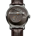 Оригинальный циферблат называют совершенством линий и лаконичности, необычное исполнение которого никого не оставляет равнодушным. Индикация времени занимает не всё пространство, секундный счётчик вынесен отдельно, серединка оставлена прозрачной. Наручные часы оснащаются автоматическим механизмом ETA 2899-S2 с запасом хода 42 часа, украшенным традиционным узором «женевские волны». Скелетонизированная задняя крышка. Антибликовое покрытие сапфирового стекла. Корпус и безельБезельВнешний ободок, закрепляющий стекло. В спортивных часах так называется поворотное кольцо с делениями на циферблате, выполняет роль таймера – замеряет отрезки времени на шкале. Неподвижный безель – элемент декора. Однонаправленно вращающийся безель на дайверских часах позволяет фиксировать моменты погружения и выныривания на поверхность. из плазменной керамикиВысокотехнологичная плазменная керамикаИнновационный материал, технология запатентована. Выплавление керамики осуществляется в печи при 20 000 °C, белоснежный материал под воздействием ультравысокой температуры приобретает уникальный блеск, присущий металлам.. Коричневый ремешок из натуральной кожи. Апертура даты. Диаметр корпуса: 43 мм.