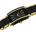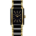 Лаконичный и сдержанный аксессуар точно понравится приверженцам классического стиля, минималистичный циферблат отличается удлинёнными часовыми индексами. Оригинально смотрится сочетание нержавеющей стали 316L и высокотехнологичной керамикиВысокотехнологичная керамикаИнновационный запатентованный Rado материал с гладкой или матовой поверхностью. Керамика за счёт кристаллической структуры обладает повышенной устойчивостью от возникновения царапин. Материал способен принимать температуру тела человека, обеспечивая невероятный комфорт при ношении.. Кварцевый механизм ETA 976.001 с высокой точностью хода. Стекло из сапфира. Водозащита 5 бар. PVD-покрытиеPVDУльтратонкое покрытие наносится в технике вакуумного напыления, сочетает в себе нитрид титана особой прочности со слоем золота или оксида хрома. Несёт в себе декоративную или защитную функцию. золотистого цвета, устойчивое к истиранию. Габариты: 33 x 23 x 6,5 мм.