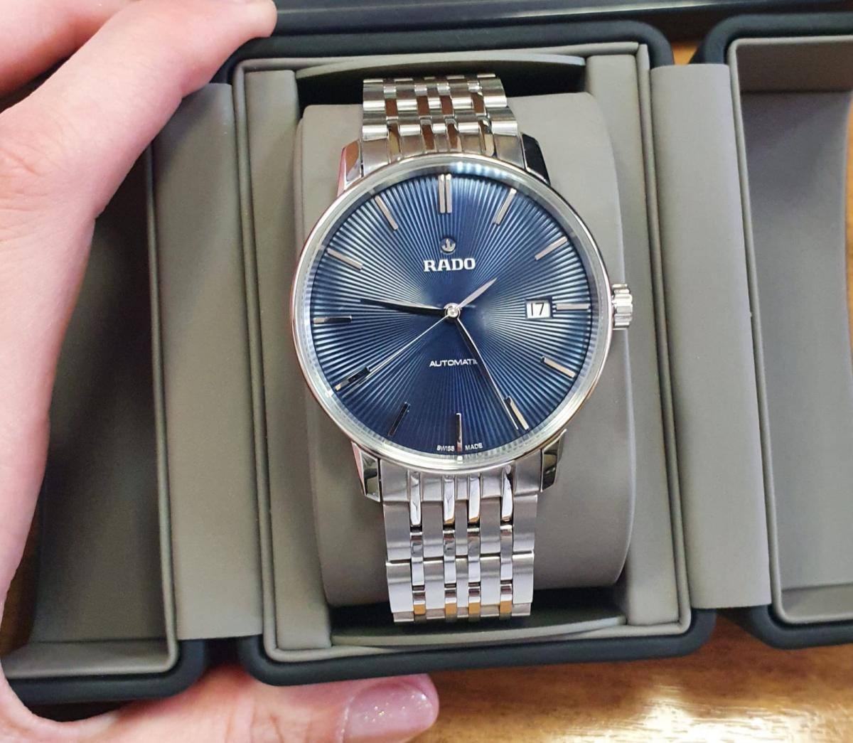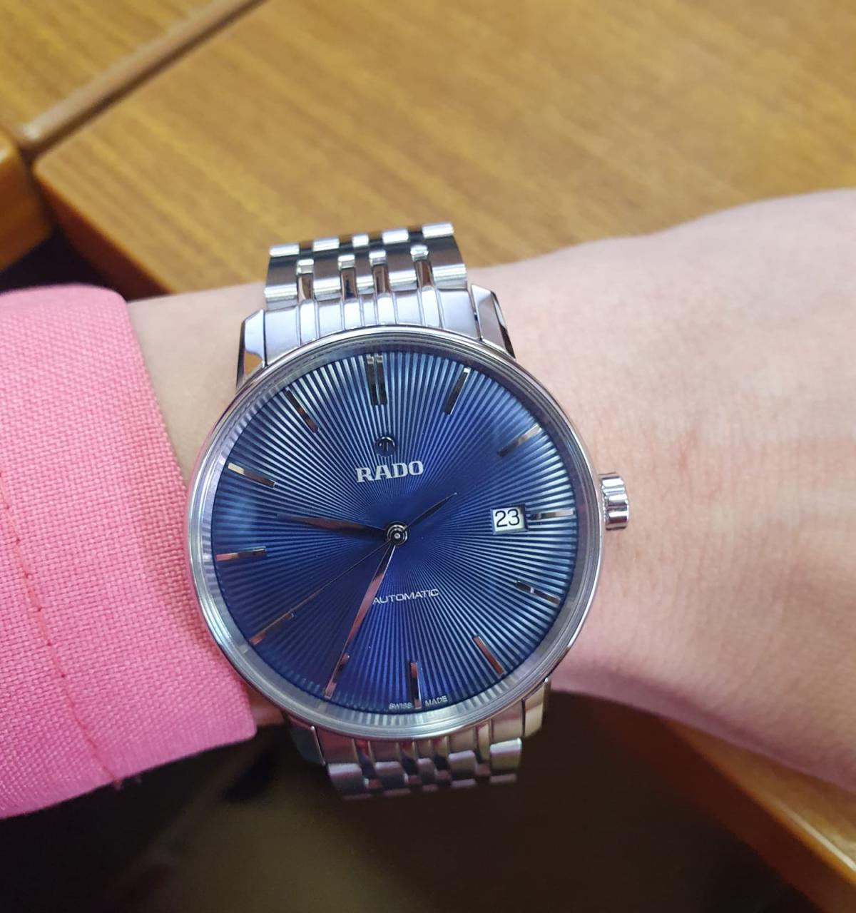 Покупкой очень довольна. Часы отлично сидят на руке, можно сочетать с любым стилем в одежде. Сама модель выглядит шикарно, красивый синий циферблат притягивает взгляды. Браслет выполнен из нержавеющей стали , с удобной застёжкой. Сапфировое стекло с антибликовым покрытием . Запас хода у этой модели до 80 часов. Без сомнения, часы Rado — это хорошие часы. Они отличаются превосходными механизмами, первоклассным мастерством и уникальными материалами.