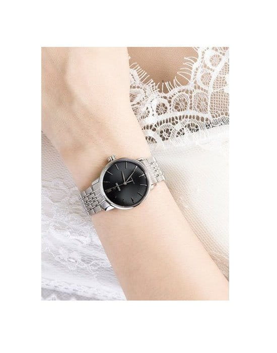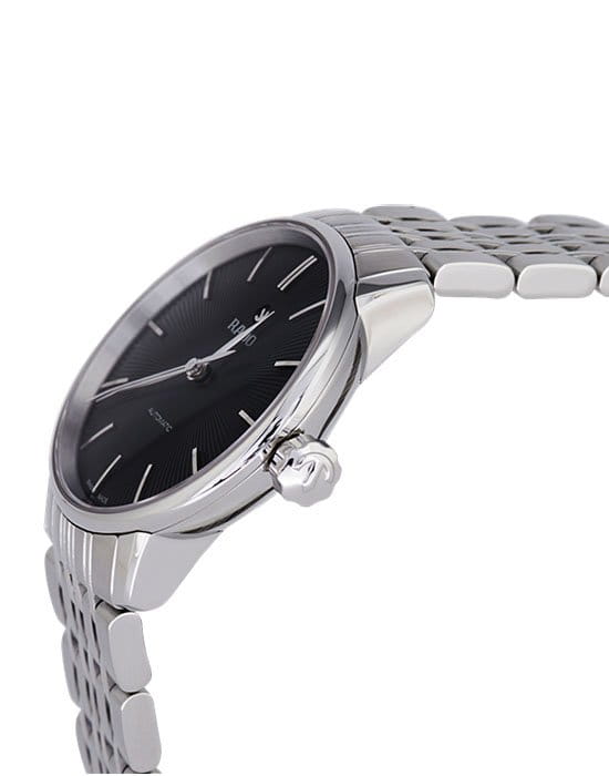 Лаконичный и строгий облик премиальной модели никогда не утратит актуальности, узорчатый чёрный циферблат отражает собой минималистичный стиль. Наручные часы с автоматической системой завода измеряют время с абсолютной точностью, что стало возможным благодаря швейцарскому калибру ETA 2671. Механизм отличается 38-часовым резервом хода, его работа прослеживается сквозь прозрачную заднюю крышку. Сапфировое стекло с покрытием «антиблик». Корпус и браслет из стали 316L с антикоррозионными свойствами. Водостойкость 5 бар. . Диаметр корпуса: 31,8 мм.