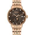 Женские кварцевые часы Rado Coupole — это элегантный аксессуар с изысканным дизайном. Корпус диаметром 34 мм и толщиной 9,7 мм выполнен из нержавеющей стали с PVD-покрытиемPVDУльтратонкое покрытие наносится в технике вакуумного напыления, сочетает в себе нитрид титана особой прочности со слоем золота или оксида хрома. Несёт в себе декоративную или защитную функцию. розового золота. БезельБезельВнешний ободок, закрепляющий стекло. В спортивных часах так называется поворотное кольцо с делениями на циферблате, выполняет роль таймера – замеряет отрезки времени на шкале. Неподвижный безель – элемент декора. Однонаправленно вращающийся безель на дайверских часах позволяет фиксировать моменты погружения и выныривания на поверхность. и заводная головка также покрыты розовым PVD. Циферблат из темного перламутра украшен 12 бриллиантами и индикатором фазы Луны. Циферблат защищён выпуклым сапфировым стекломСапфировое стеклоПрочный и надёжный материал из кристалла сапфира синтетического происхождения, характеризующийся особой твёрдостью и устойчивостью к царапинам и повреждениям.. Механизм — кварцевый. Часы оснащены девятирядным браслетом из нержавеющей стали с PVD-покрытиемPVDУльтратонкое покрытие наносится в технике вакуумного напыления, сочетает в себе нитрид титана особой прочности со слоем золота или оксида хрома. Несёт в себе декоративную или защитную функцию. розового золота и трёхсекционной застёжкой из титана и стали с PVD-покрытиемPVDУльтратонкое покрытие наносится в технике вакуумного напыления, сочетает в себе нитрид титана особой прочности со слоем золота или оксида хрома. Несёт в себе декоративную или защитную функцию.. Универсальный выбор для тех, кто ценит роскошь, женственность и швейцарское качество.