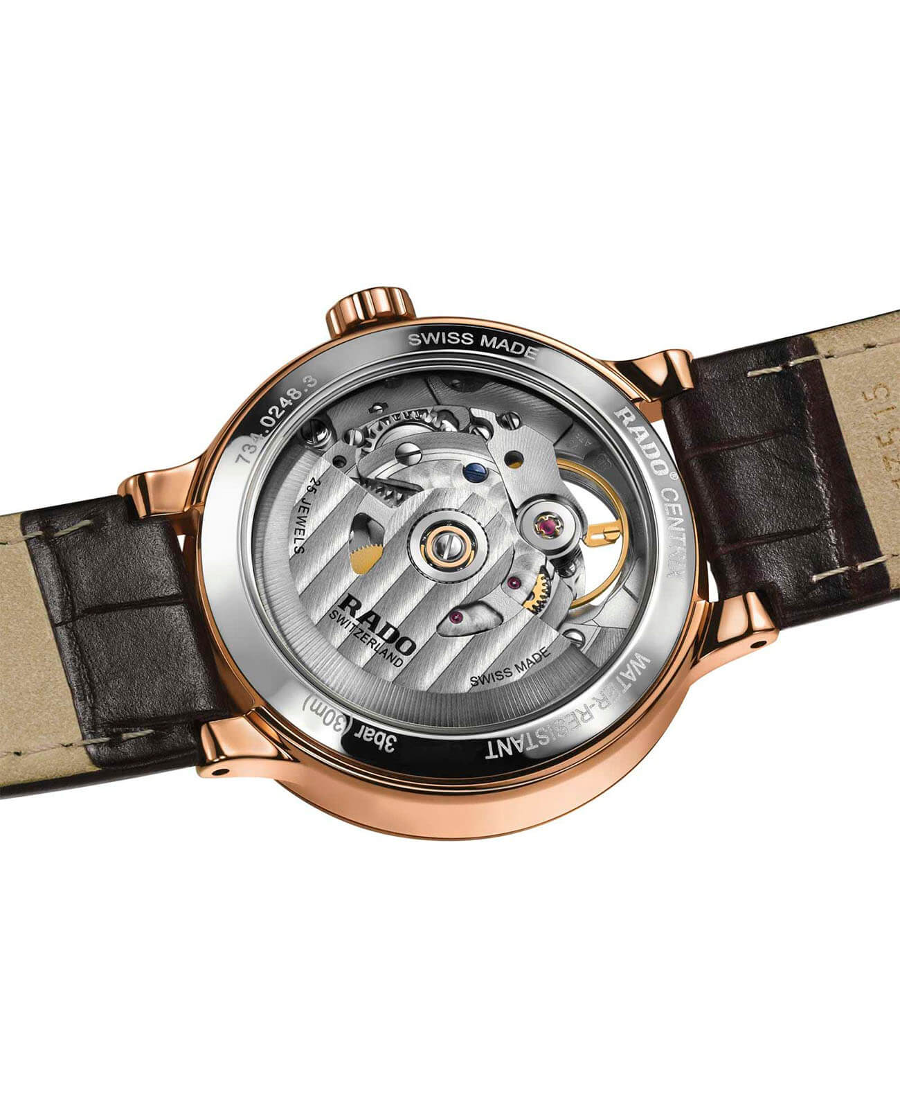 Швейцарские механические часы-скелетоны с автоподзаводом Rado Centrix Automatic Diamonds Open Heart R30248715. Сапфировое стеклоСапфировое стеклоПрочный и надёжный материал из кристалла сапфира синтетического происхождения, характеризующийся особой твёрдостью и устойчивостью к царапинам и повреждениям. устойчивое к мелким механическим повреждениям. Корпус часов изготовлен из нержавеющей стали с PVD-покрытиемPVDУльтратонкое покрытие наносится в технике вакуумного напыления, сочетает в себе нитрид титана особой прочности со слоем золота или оксида хрома. Несёт в себе декоративную или защитную функцию.. Класс водозащиты: 30 метров, позволит защитить корпус от случайных брызг или капель дождя. Кожаный ремешок на раскладной застёжкеРаскладная застёжкаТакой тип застёжки используется только на браслетах из металла. Она никогда не раскрывается полностью, происходит разделение на 2 и более частей. Раскладывающая застёжка снизит вероятность потери часов к минимуму..