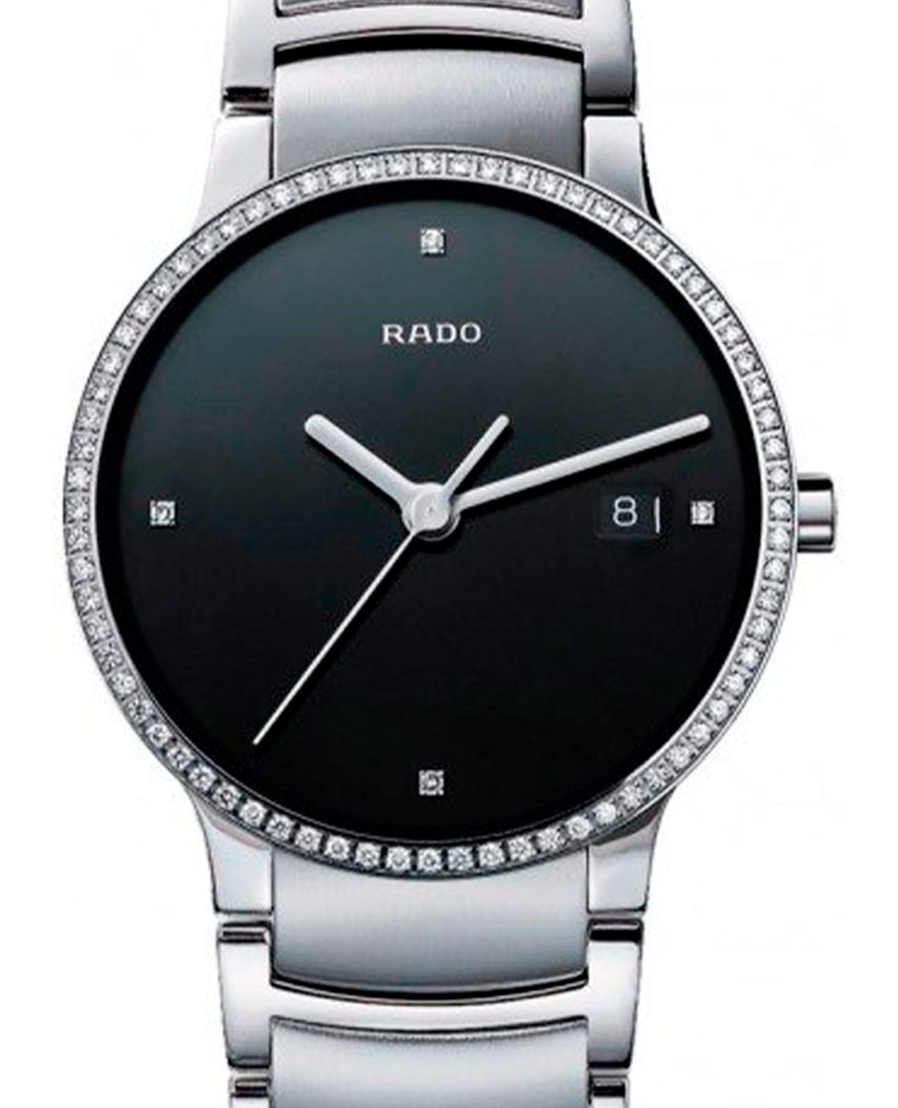 Швейцарские часы Rado Centrix Diamonds R30630713 из коллекции Centrix станут выражением вашей любви к роскошному стилю и гармонии. БезельБезельВнешний ободок, закрепляющий стекло. В спортивных часах так называется поворотное кольцо с делениями на циферблате, выполняет роль таймера – замеряет отрезки времени на шкале. Неподвижный безель – элемент декора. Однонаправленно вращающийся безель на дайверских часах позволяет фиксировать моменты погружения и выныривания на поверхность. и циферблат инкрустированы бриллиантами. Корпус из нержавеющей стали. Стальной браслет на раскладной застёжкеРаскладная застёжкаТакой тип застёжки используется только на браслетах из металла. Она никогда не раскрывается полностью, происходит разделение на 2 и более частей. Раскладывающая застёжка снизит вероятность потери часов к минимуму., имеет вставки из высокотехнологичной керамикиВысокотехнологичная керамикаИнновационный запатентованный Rado материал с гладкой или матовой поверхностью. Керамика за счёт кристаллической структуры обладает повышенной устойчивостью от возникновения царапин. Материал способен принимать температуру тела человека, обеспечивая невероятный комфорт при ношении.. Сапфировое стеклоСапфировое стеклоПрочный и надёжный материал из кристалла сапфира синтетического происхождения, характеризующийся особой твёрдостью и устойчивостью к царапинам и повреждениям. устойчивое к мелким механическим повреждениям. Класс водозащиты: 30 метров, позволит защитить корпус от случайных брызг или капель дождя.