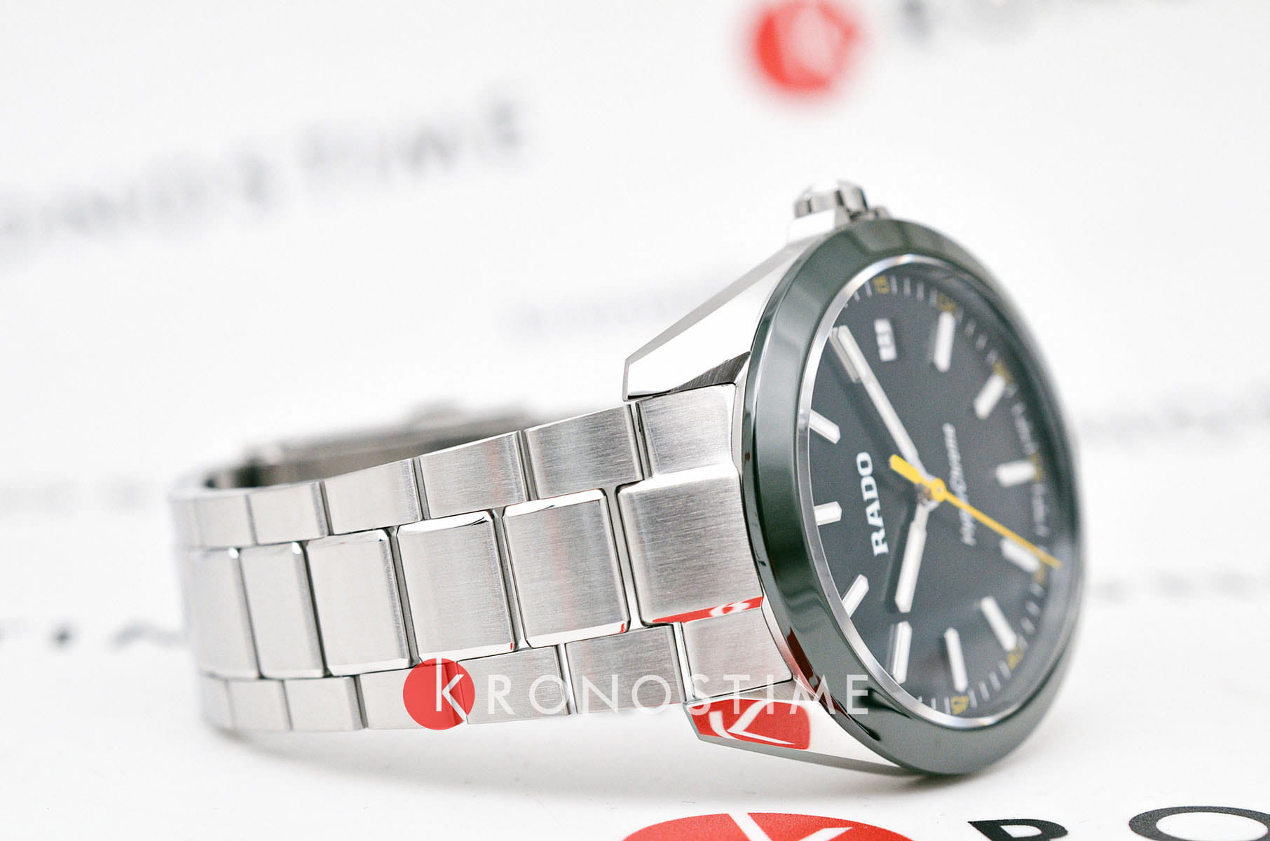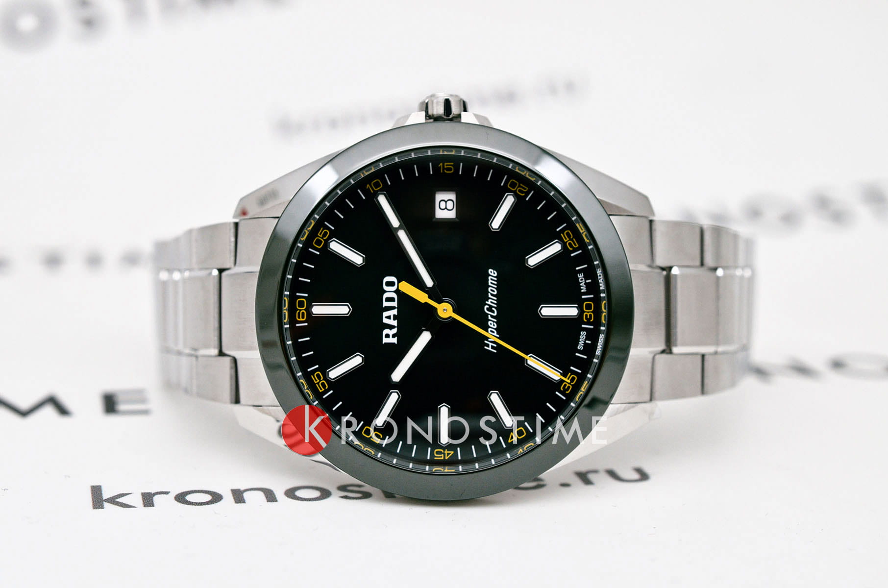 Мужские кварцевые часы Rado HyperChrome — это современное воплощение точности и мастерства материалов. Корпус диаметром 41,5 мм и толщиной 11,7 мм выполнен из полированной и матовой нержавеющей стали. БезельБезельВнешний ободок, закрепляющий стекло. В спортивных часах так называется поворотное кольцо с делениями на циферблате, выполняет роль таймера – замеряет отрезки времени на шкале. Неподвижный безель – элемент декора. Однонаправленно вращающийся безель на дайверских часах позволяет фиксировать моменты погружения и выныривания на поверхность. изготовлен из высокотехнологичной керамикиВысокотехнологичная керамикаИнновационный запатентованный Rado материал с гладкой или матовой поверхностью. Керамика за счёт кристаллической структуры обладает повышенной устойчивостью от возникновения царапин. Материал способен принимать температуру тела человека, обеспечивая невероятный комфорт при ношении. зелёного цвета, придающей часам прочность и изысканность. Циферблат зелёного цвета с лакированным покрытием оформлен индексами и стрелками с люминесцентным покрытиемЛюминесцентное покрытиеПозволяет считывать показания времени в темноте. Производители наносят на стрелки, часовые индексы, безель или поверхность циферблата светонакопительный состав, дающий холодное свечение. Super-Luminova®. Особенность подсветки — зелёное свечение метки 12 часов и минутной стрелки, и синее — остальных индексов и часовой стрелки, что обеспечивает интуитивное считывание времени в темноте. Циферблат защищён выпуклым сапфировым стекломСапфировое стеклоПрочный и надёжный материал из кристалла сапфира синтетического происхождения, характеризующийся особой твёрдостью и устойчивостью к царапинам и повреждениям. с антибликовым покрытиемАнтибликовое покрытиеСлой оксида металла в 0,13-0,3 микрон, благодаря которому стекло часов не бликует и не отражает свет. Антибликовое покрытие уменьшает отражение света в 10 раз, обеспечивая отличную читаемость показателей циферблата. на внутренней стороне. Механизм — кварцевый. Окошко даты расположено в положении 3 часов. Часы оснащены трёхрядным стальным браслетом с центральными звеньями и трёхсекционной застёжкой с системой быстрой регулировки. Водонепроницаемость 150 м позволяет использовать часы для плавания и повседневного ношения. Идеальный выбор для тех, кто ценит инновации, точность и смелый дизайн.
